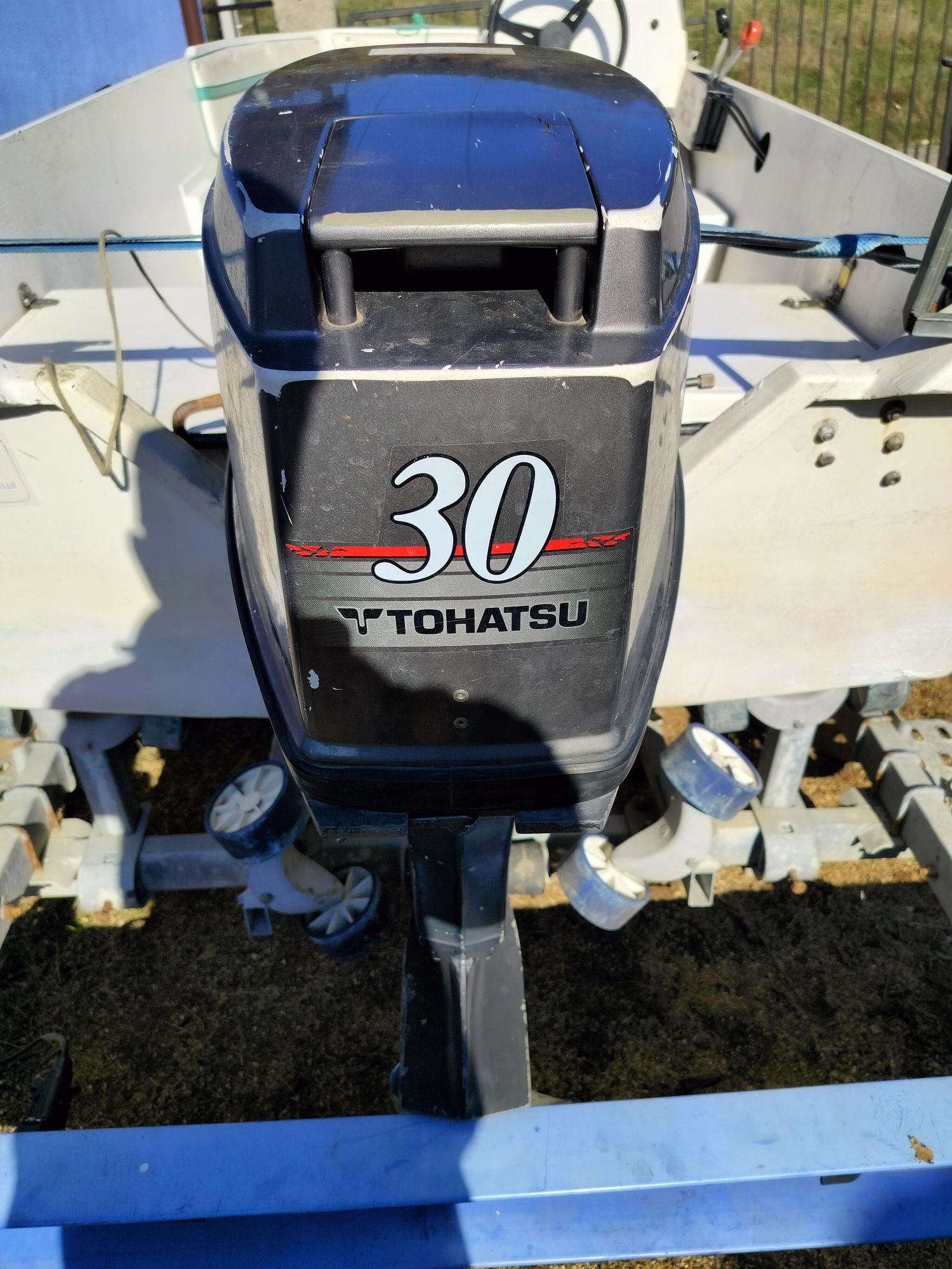 Barca este foarte stabila. Se pretează atât pentru pescuit la răpitor cât si stationar. Motor Tohatsu 30 cp în doi timpi. Dau diferența unde este cazul. Fără peridoc.