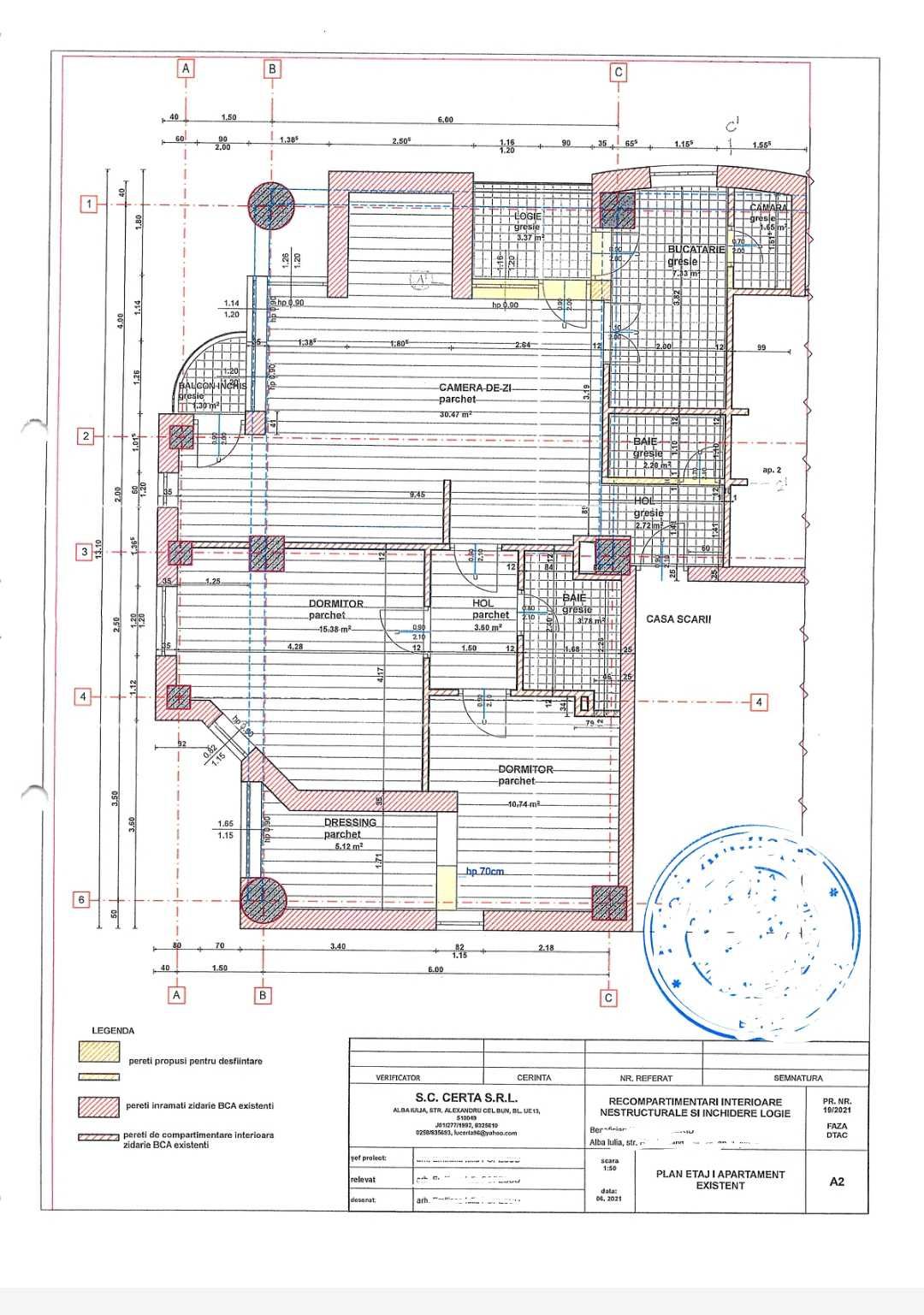 Proprietar, ofer spre vânzare un apartament deosebit cu 3 camere, semi finisat, situat la etajul 1 al unui imobil din Centru cu acces facil la mijloace de transport public, magazine, instituții publice, cetatea Alba Carolina și zone de agrement IMOBILUL este construit în perioada '92-'95, este prevăzut cu lift, beci cu 1 boxă pentru fiecare apartament, cu loc de depozitare pentru biciclete, 1 balcon comun pentru fiecare etaj (3 ap). APARTAMENTUL are 85mp utili, compartimentați astfel 1 Living luminos și generos. 2 Dormitoare din care unul prevazut cu dresing. 1 Bucătărie + 1 cămară 2 Balcoane 1 loc de luat masa 2 Băi DOTĂRI centrală termică geamuri termopane. Apartamentul are proiect si autorizatie pentru renovare si recompart imentare prevazut cu sistem de incalzire in pardoseala Bjorn (achizitionat deja) oferind posibilitatea realizarii finisajelor dupa propriul gust. Telefon 07 81