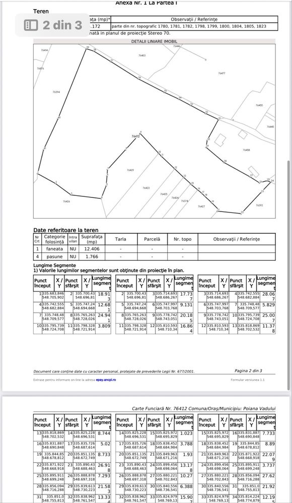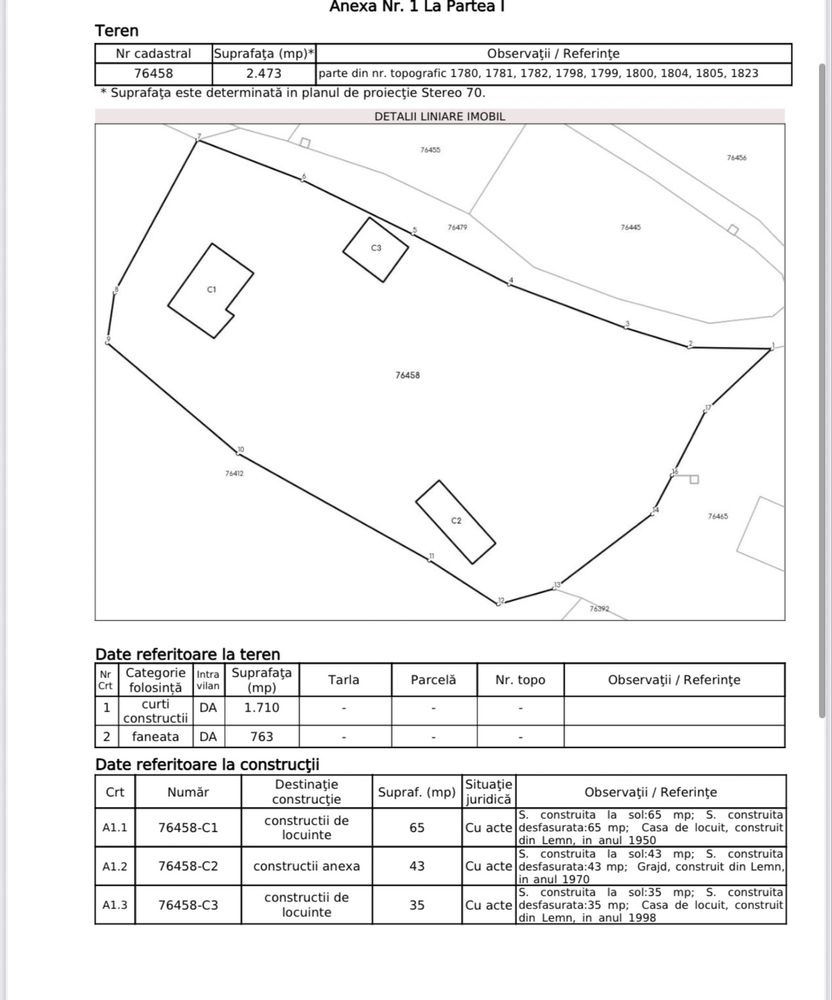 O oportunitate rară două proprietăți cu CF, situate în Poiana Vadului, sat Coștești nr. 169, zonă liniștită și pitorească. Ideal pentru locuință, casă de vacanță sau investiție turistică. - Acte în regulă, CF individual pentru fiecare teren -Vânzare direct de la proprietar fără intermediari 1. Teren extravilan 14.172 mp (CF) lPoiana Vadului, jud. Alba Suprafață 14.172 mp Tip extravilan Drum de acces existent curent electric apă potabilă Pretabil pentru exploatație agricolă / fermă cabane / camping livadă / plantații investiție pe termen lung 2. Teren intravilan + construcții 2.473 mp (CF) Poiana Vadului / Coștești, nr. 169 Suprafață teren 2.473 mp Drum de acces direct Construcții incluse în CF Casă veche tradițională din lemn în stare bună pentru recondiționare sau extindere. Cabană locuibilă, în stare ok necesită doar mici renovări. Anexe gospodărești (grajd, magazie) Perfect pentru locuință permanentă casă de vacanță cabană / pensiune mică gospodărie într-o zonă retrasă și liniștită Preț total pachet 55.000 mii Se vând doar împreună cele două proprietăți. Proprietățile sunt una lângă alta . Intr o bucată Contact direct proprietar 07 83