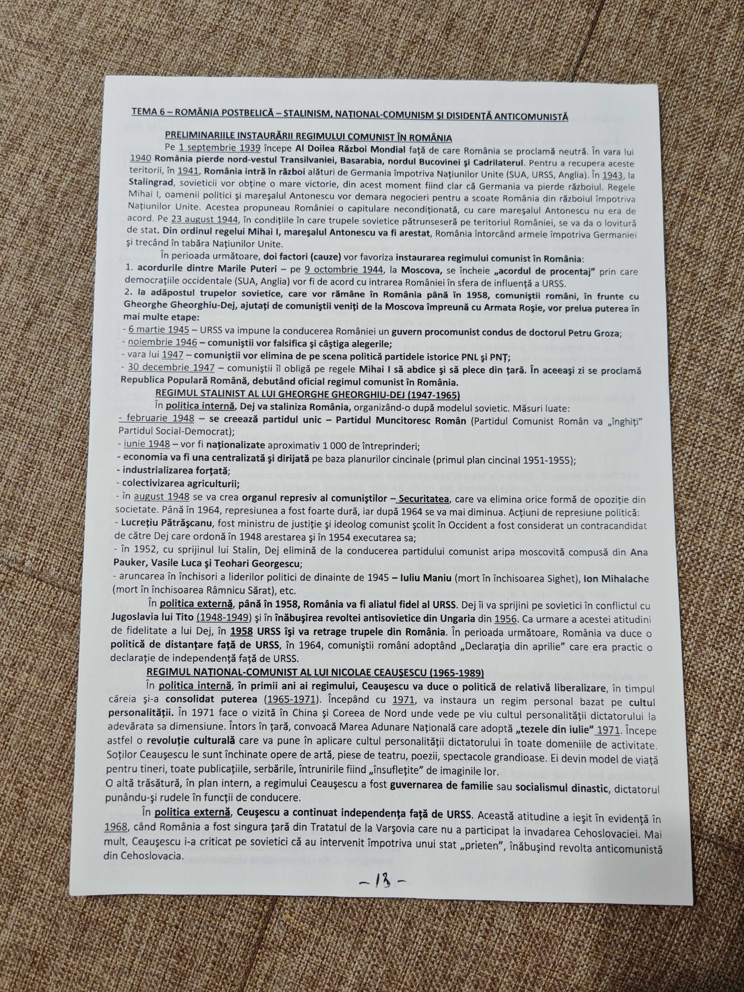 Materiale Istorie BAC Toată materia pentru Nota 10! Fizic sau Pdf Vând un set complet de 25 de pagini, perfect structurate pentru Bacalaureat la Istorie tot ce trebuie să știi pentru a lua nota maximă, explicat clar, simplu și cronologic. Totul pus într-un portofoliu! Conținut complet toate capitolele cerute la BAC Structură logică și ușor de învățat Explicații clare + evenimente ordonate cronologic Aspect estetic și organizare impecabilă în pagina