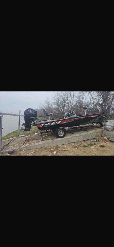 Barca aluminiu An fabricatie 2016 Dimensiuni Lungine 5,36 latime 2,26 Pompa de santina 5 spati generoase de depozitare Rezervor benzina 80 L Spatiu depozitare lansete 8 2,2 m Claxon Husa originala pentru stationare Capacitate 4 persoane 5 scaune 3 mers în mars 2 pentru pescuit fata spate Peridoc original Bass Tracker USA omologat pentru România scoti si dai barca la apa în mai putin de 2 min Motor de pe barcă este Mercury proxs de 115 cai 470 ore de functionare ,husa de motor care poti merge în mers 2 elice una de inox una de aluminiu Sistem de blocare directie hidraulic in timpul mersului cu masina Sistem de blocare motor în timpul mersului cu mașina Directie hidraulica Bay Star cu volan reglabil pe inaltime Motor electric MINN KOTA Ulterra Quest cu telecomanda prețul lui nou a fost 25000 lei Barca se vinde fara sonar și sonda Barca se vinde dotata cu bateri cu tot,numa o pui pe apa și mergi la pescuit ! .pret 33000 neg