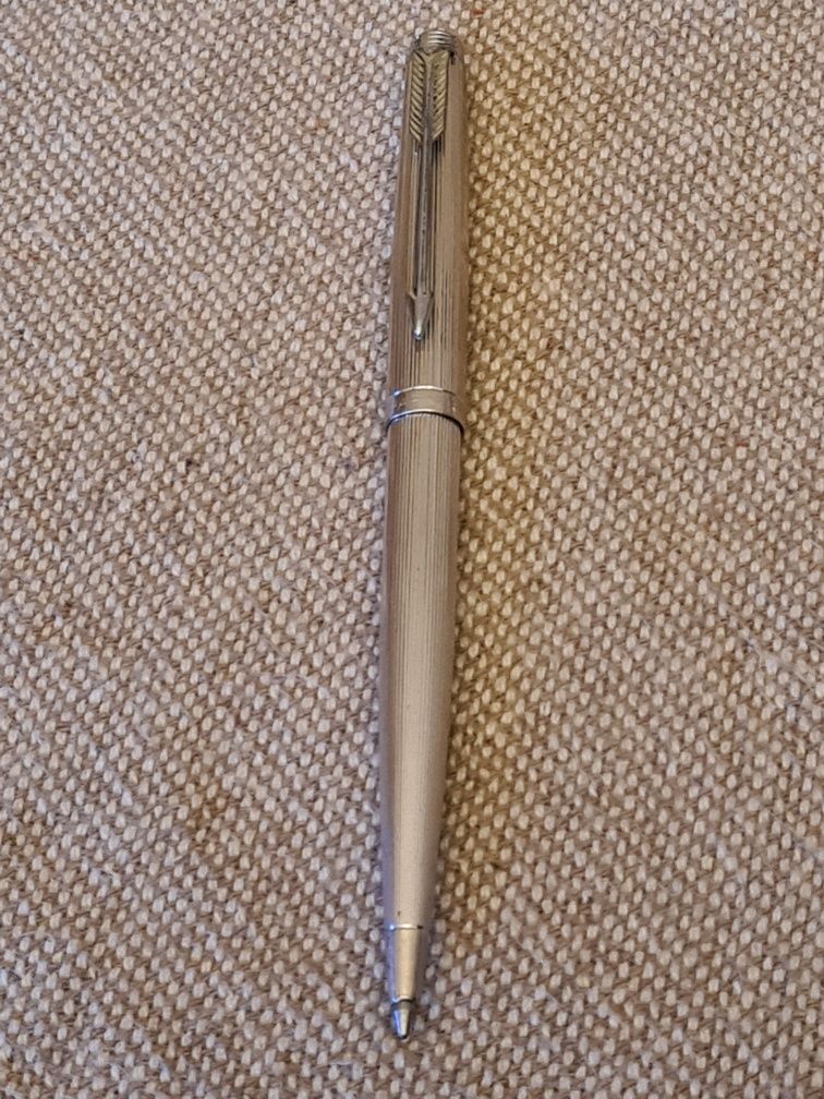 Pix Parker 45 Silver vintage, complet metaic, cu mina originală, în condiții excelente de funcționare, dar și din perspectiva estetică. Practic, este ca nou întrucât nu a fost folosit. Pixul este elegant și practic, putând fi utilizat în orice contexte sau ocazii. Colecționarii știu care este valoarea unui astfel de instrument de scris. Cei care nu știu ce înseamnă un pix marca Parker pot testa un astfel de instrument și au mai șanse să devină colecționari.