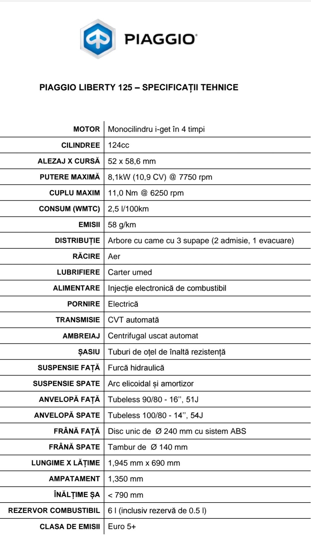 Scuter Piaggio Liberty 125 ABS E5+, 2025, nou, 0 km Piatra Neamt