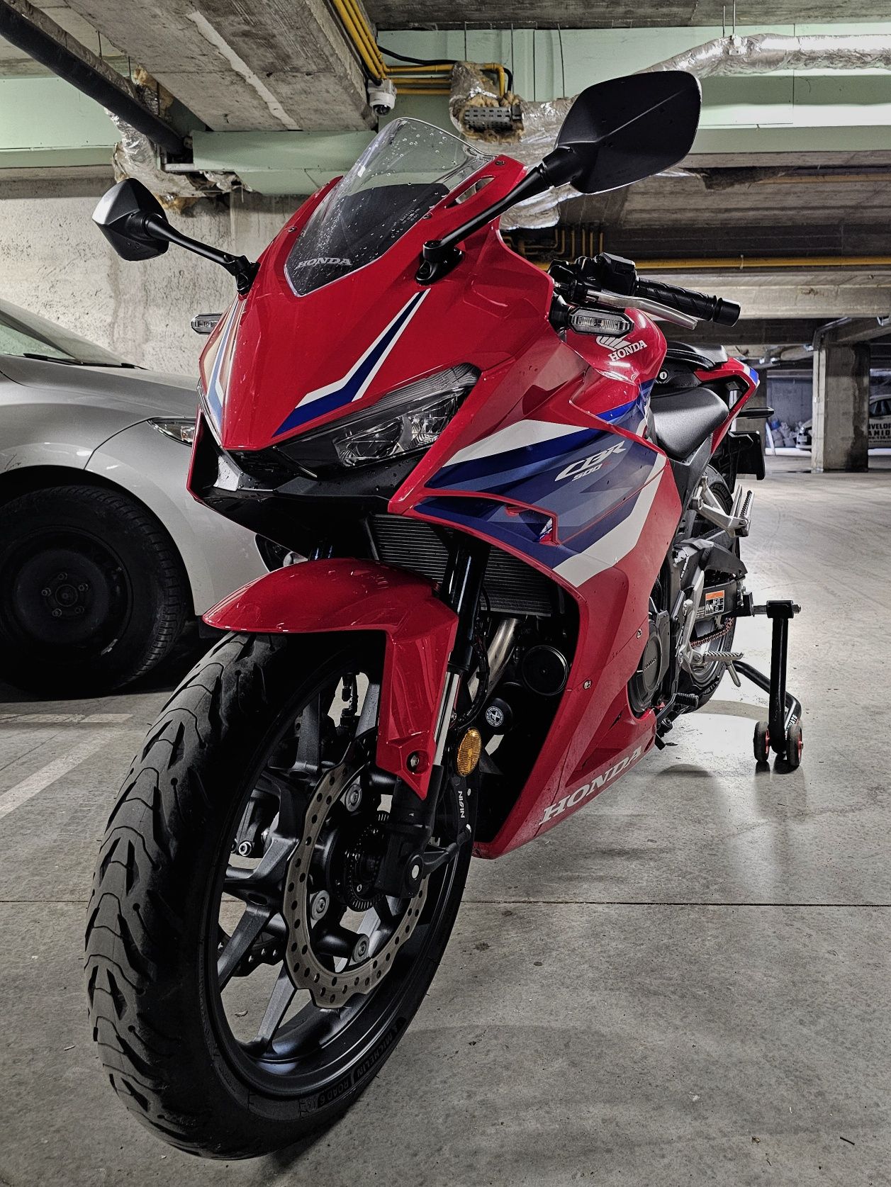 Vând Honda CBR 500R - 2025 Motocicleta a fost folosita extrem de puțin, cumpărată de noua de la Honda, are pana în 2000 de kilometri rulați, ținută în garaj cu husa pe ea. Prezintă mici defecte optice, de aici și prețul accesibil. Are kit de coborare montat, ideal pentru persoane scunde!