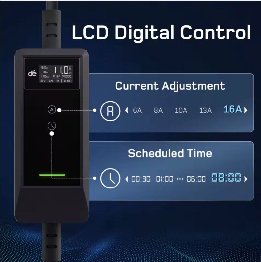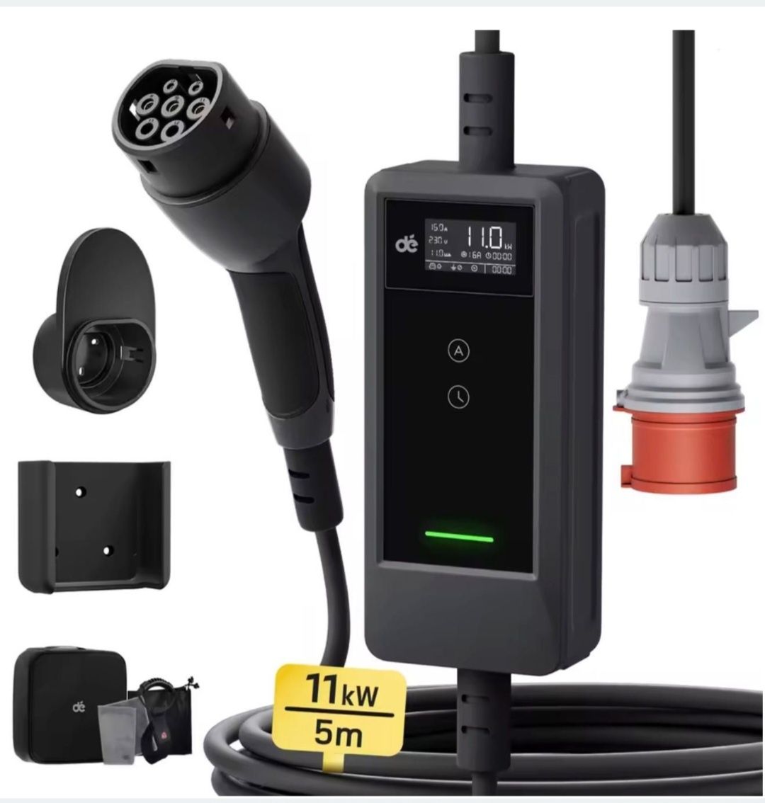 Statie de încărcare auto (masina electrica sau hibrid) D EV Charger CEE 11kW trifazat/monofazat, lungime cablu total 6m Incarcator mobil sau de perete 11 kW, instalare ușoară nu necesită un proces de instalare elaborat. Pur și simplu conectați la o priză CEE existentă pentru o putere de până la 11 kW. Poate fi utilizat ca incarcator fix de perete acasă sau la serviciu, precum și ca încărcător mobil pentru deplasări. Cu o lungime totală de 6 m, veți avea o rază mai largă de încărcare din partea din spate a vehiculului. De 3 ori mai rapid decât prizele de uz casnic cu priza CEE trifazată de 16A, obțineți o putere de încărcare de 11 kW pe oră (230V x 16A x 3). Setare reglabilă a timpului de încărcare se poate regla ușor curentul de încărcare de la 6 la 16 A, inclusiv funcția de întârziere. Colectează informații despre utilizare și le afișează pe ecranul LCD pentru un proces de încărcare mai eficient. Pachetul include stație de încărcare EV de 11 kW, geantă impermeabilă, lavetă din microfibră inclusă, o curea de transport pentru gestionarea cablurilor, portabilitate sau montare pe perete. Compatibilitate largă cu majoritatea vehiculelor cu conectori de type 2 si PHEV-uri cum ar fi Tesla Model 3, Model S, Model Y, Model X Volkswagen ID.3, ID.4, ID.7, ID. Buzz, e-Golf, e-UP, e-Crafter Renault Zoe, Megane E-Tech, Twingo Electric, Captur Plug-in, Kangoo Z.E. 33 Nissan Leaf Peugeot e-208, e-2008, 3008 Plug-in SUV, 408 Plug-in, e-Expert, e-Rifter, e-Traveller Skoda Enyaq, Citigo-e iV, Octavia iV, Superb iV, Kodiaq 2023 Plug-in Opel Corsa-e, Mokka-e, Astra Electric, Zafira-e, e-208, e-2008, e-Expert, e-Rifter, e-Traveller Volvo C40 Recharge, XC40, XC60, XC90, V60, S90 Toyota bZ4X, Prius Plugin, RAV4 Plug-in Hybrid, Across Plug-in Hybrid, Proace Porsche Taycan, Cayenne E-Hybrid, Panamera Hybrid Audi Q4 e-tron, Q8 e-tron, e-tron GT BMW i4, iX, i7, i5, iX1, iX3, iX5, i4, iX1 Mercedes-Benz EQS, EQE, EQB, EQC, EQA, EQV, eVito, eV-Class Smart 1, EQ forfour, EQ fortwo Specificatii tehnice Tensiune 230-400V AC Putere Max trifazat 11kW (400V la 16A) sau monofazat 3,7kW (230V la 16A) - necesita cablu adaptor CEE 400V la schuko 230V Curent 6A/8A/10A /13A/16A Tehnologie protectie tip B 30mA AC + DC 6mA și siguranță dublă cu protecție la supracurent, supra/subtensiune, împământare, supraîncălzire și scurtcircuit, impermeabilă și rezistentă la praf Certificare CE Temperatură de funcționare -25 C până la +50 C