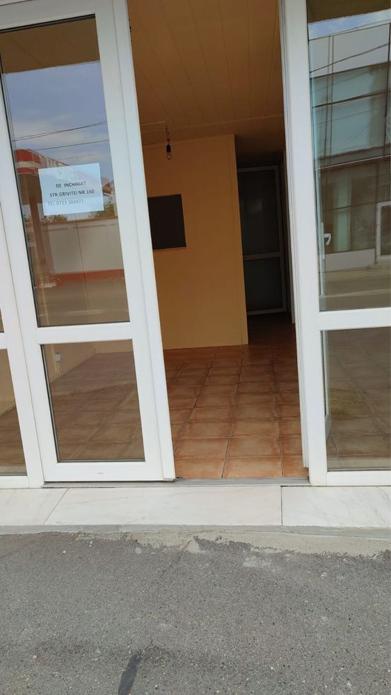 Inchiriez spatiu comercial 23 mp la strada vizibilitate foarte buna acces direct din trotuar. Curat luminos intretinut Dotari aer conditionat grup sanitar apometru geamuri mari vitrina stradala Potrivit pentru papetarie magazin mic agentie birou croitorie reparatii incaltaminte punct servicii Nu coafor frizerie Pozitie buna trafic pietonal si auto Disponibil imediat Telefon 07 77
