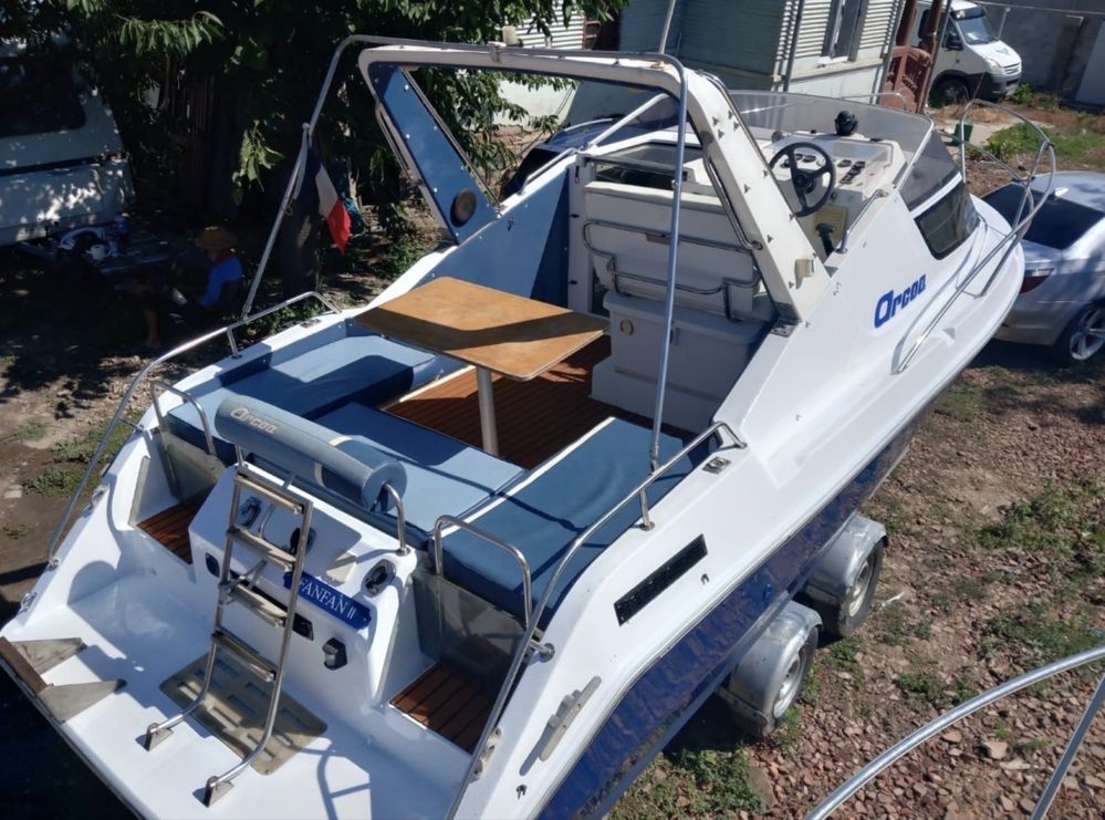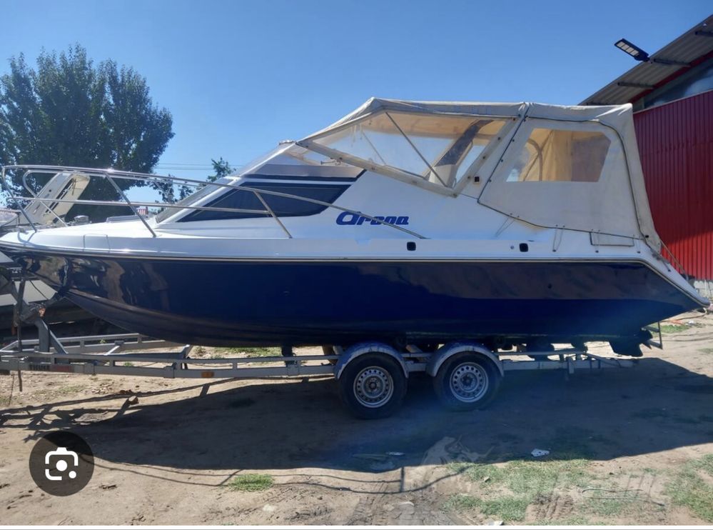 Barca este inmatriculata cu motorizare inboard de 4,3L mercruiser 219Cp. Are 7,2 metri lungime si 2,6 m latime cu un pescaj de 0,6.Peridocul este unul cu axa dubla.Are parte de bucatarie cu aragaz , frigider, chiuveta cateva dulapioare pentru depozitare, Wc , Dus, un dormitor 4 persoane plus inca un spatiu de dormit de 2 persoane. 2acumulatori de 105A fiecare (noi sigilati)plus set de revizie motor complet nou in cutie, , 6 veste de salvare,ancora, 2 pompe de santina, tapiterie imitatie piele, 6 baloane acostar, suporti pescuit .etc