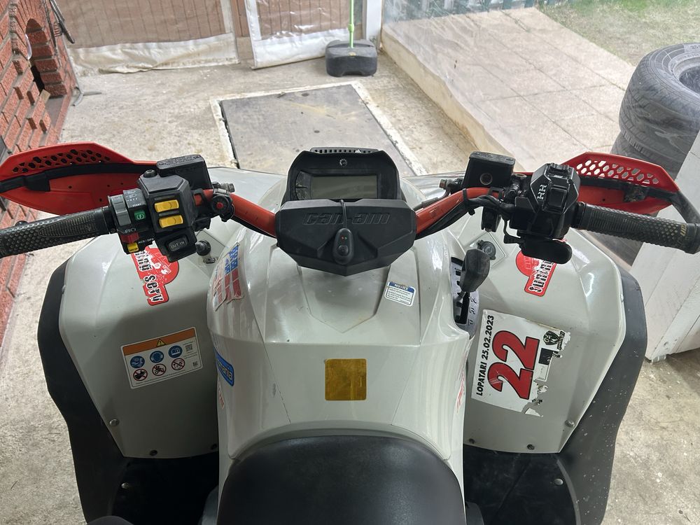 Cumpărat de nou de la Euronautica Servisat și gresat regulat Carte service Fără incidente nedorite Folosit la plimbări și ieșiri în natură nu extreme Bascule lungite pentru stabilitate și confort sporit Frâna separat față și spate Al 2 le-a etrier spate Scuturi poliamida sub tot atv -ul Distanțiere la roțile spate Evacuare dublă HMF Încălzire în mânere și accelerație originală can am Proiector led OSRAM Troliu electric cu sufa sintetică Anvelope noi Curea de schimb 2 chei FĂRĂ ACCIDENT