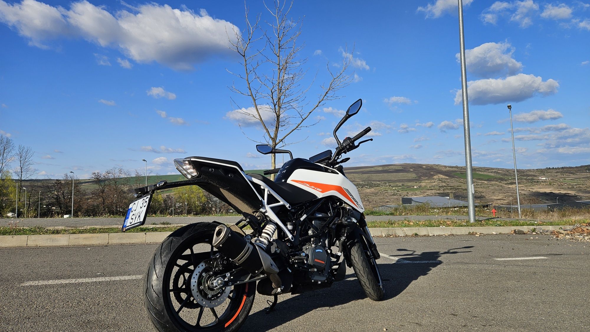 KTM Duke 390 2022 Naked pur-sânge 44 CP impecabilă Se poate conduce cu A2 Vând KTM Duke 390 (2022) o motocicletă care combină perfect puterea, agilitatea și designul agresiv. Ideală pentru cei care vor un naked sportiv, ușor și plin de adrenalină. Detalii tehnice Motor 373 cc 44 CP / 37 Nm răspunde instant Cutie 6 trepte, ambreiaj slipper clutch Suspensii WP APEX față/spate reglaj precis, control excelent ABS Bosch cu mod Supermoto poți elibera spatele la frânare Ecran TFT color, conectivitate Bluetooth Frâne ByBre etrier radial, disc 320 mm Doar 149 kg extrem de manevrabilă potrivita pentru incepatori Duke 390 este o adevărată scalpel bike taie virajele cu precizie, accelerează curat și arată spectaculos. Perfectă pentru oraș sau serpentine. Întreținută corect, revizii la zi.Lant curatat la fiecare 500 km. Cauciucuri noi Pirelli Diablo Rosso III montate in aprilei 2025 Fără accidente Pregătită de drum doar pui cheia și pleci ITP si asigurare valabile Motiv vânzare upgrade la cilindree mai mare. Se poate vedea și testa la cerere in Cluj-Napoca.