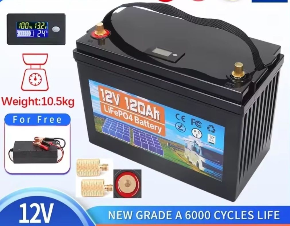 Acumulator litiu LiFePo4 de 120Ah pentru sisteme fotovoltaice, rulote, baterii electrice, sisteme solare off-grid Ecran LCD Deep-cycle cu durata de viață de peste 6000 cicluri - capacitate 120Ah - dimensiuni 330 x 230 x 170mm - greutate 11kg Nou nouță, am cumpărat-o pentru a folosi la o barcă cu motor electric dar s-au schimbat prioritățile i am vândut barca între timp