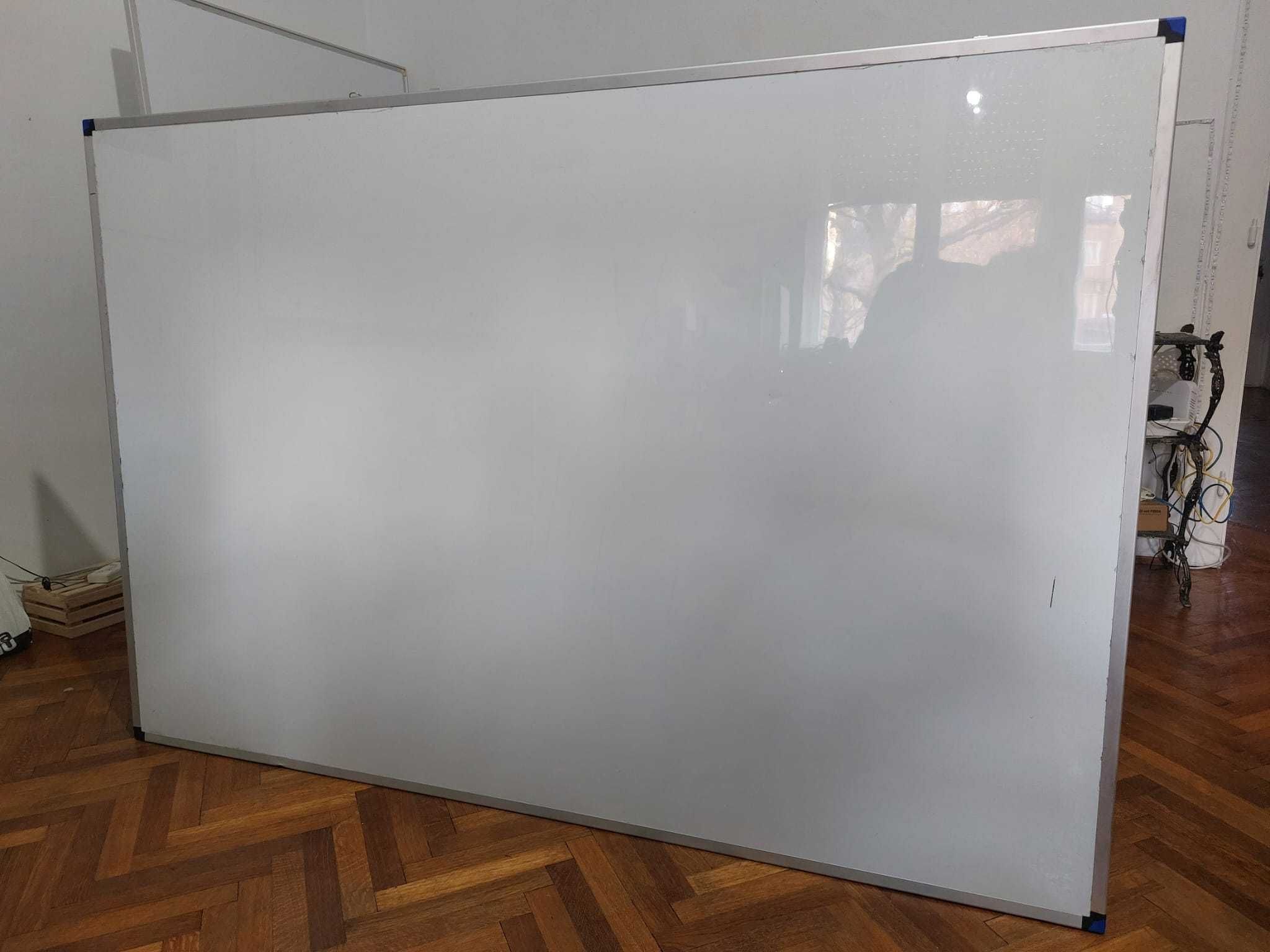 Tablă magnetică albă de înaltă calitate, cu ramă din aluminiu premium, dimensiuni inaltime 120cm x lungime 180cm. Ideală pentru birou, școală sau acasă. Se prinde de perete in 2 moduri - fie pe colturi prin gaurile desemnate - fie sus prin inelele de prindere care culiseaza pe toata lungimea tablei Are mici defecte, Se poate ridica din Cluj Napoca, nu trimit prin curier
