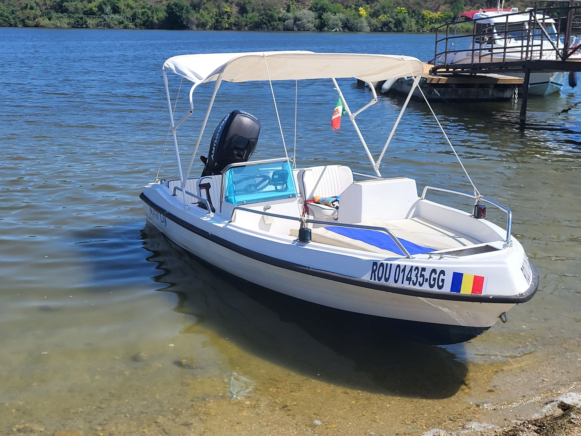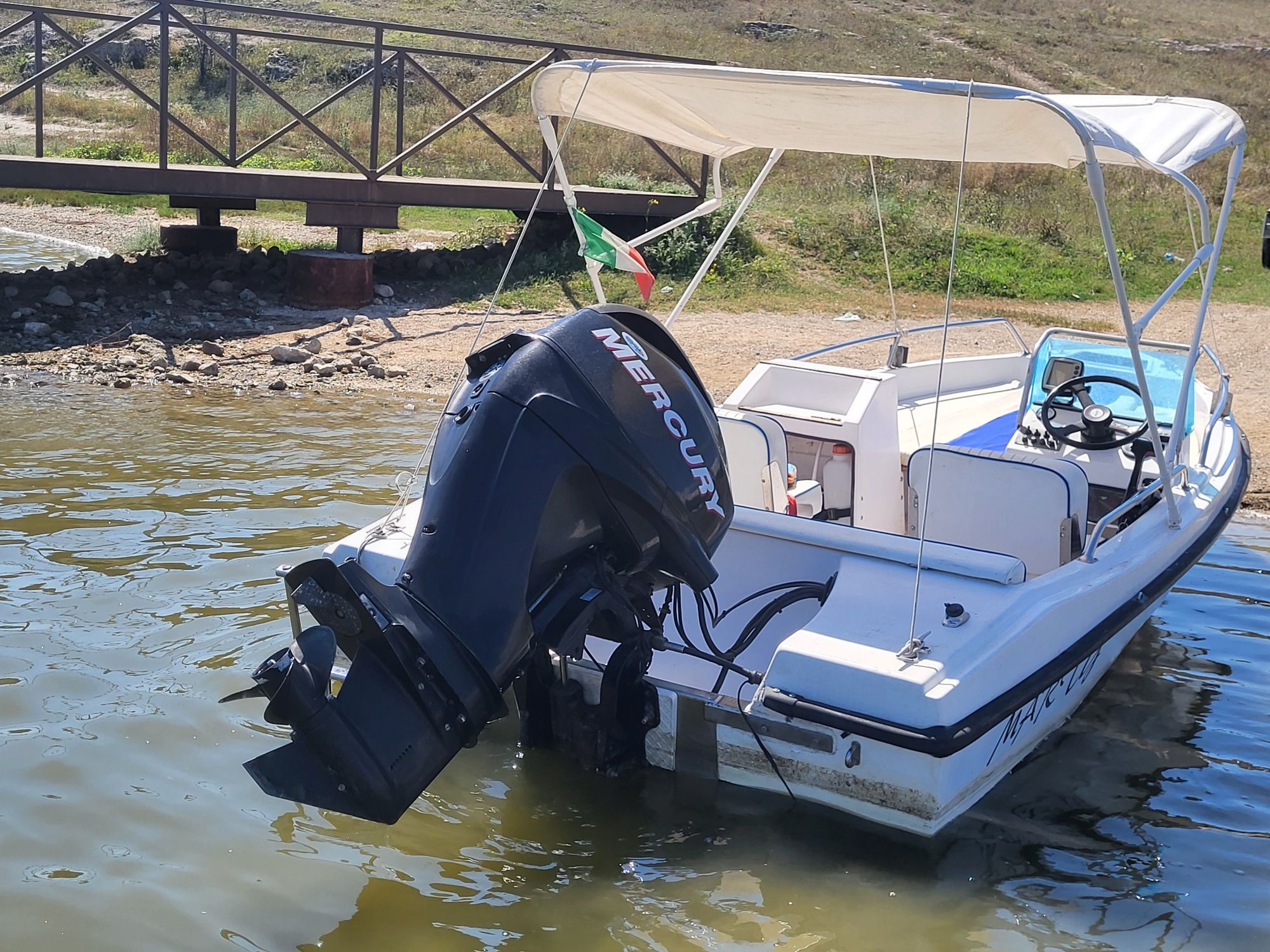 Vând barcă Rio Open + peridoc + motor Mercuri 40-60 cp în perfectă stare de funcționare motor în 4 timpi pe injecție sonar garmin pompă santină ridicare coborâre motor la buton comenzi la distanță barcă și motor inmatriculate peridoc inmatriculat rom toate actele în regula fiscal pe loc