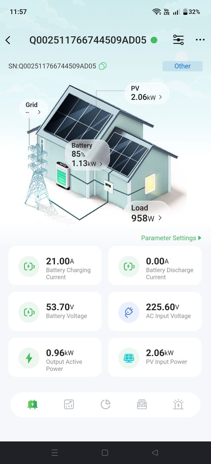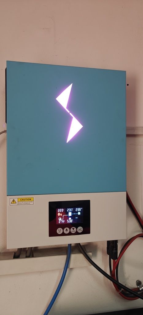 INVERTOR HIBRID MONOFAZAT VICTOR NM-IV-6.2KW PLUS Vand Invertor hibrid monofazat aflat momentan in functiune. Invertorul are si sistemul wifi inclus pentru conectare si monitorizare prin internet. Datele invertorului sunt in fotografii Este conectat la doua baterii TAICO LifePO4 de 5.12KWh 100Ah de 48 V. Sunt in functiune de 2 ani. Le vad pentru ca upgradez sistemul la 12Kw si baterii de 15KWwh intrucat am schimbat prin casa cam totul pe electric. Invertorul - 1700 Bateriile - 5000