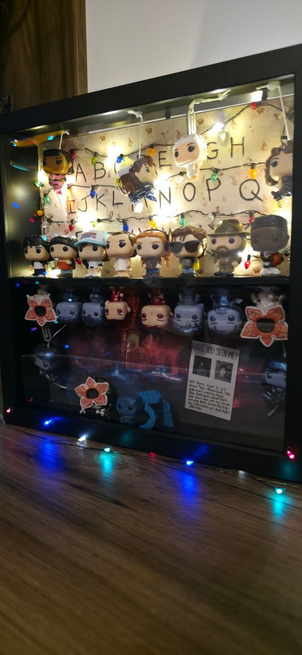 Suport figurine Stranger Things cu LED-uri realizat din lemn rezistent. Culoare suport Negru Alimentare LED Pe două baterii de tip AA. Figurinele NU sunt incluse in suport și preț. Pentru mai multe detalii, îmi pute i lăsa un mesaj privat. Predare personala in Constanta sau livrare oriunde in tara.