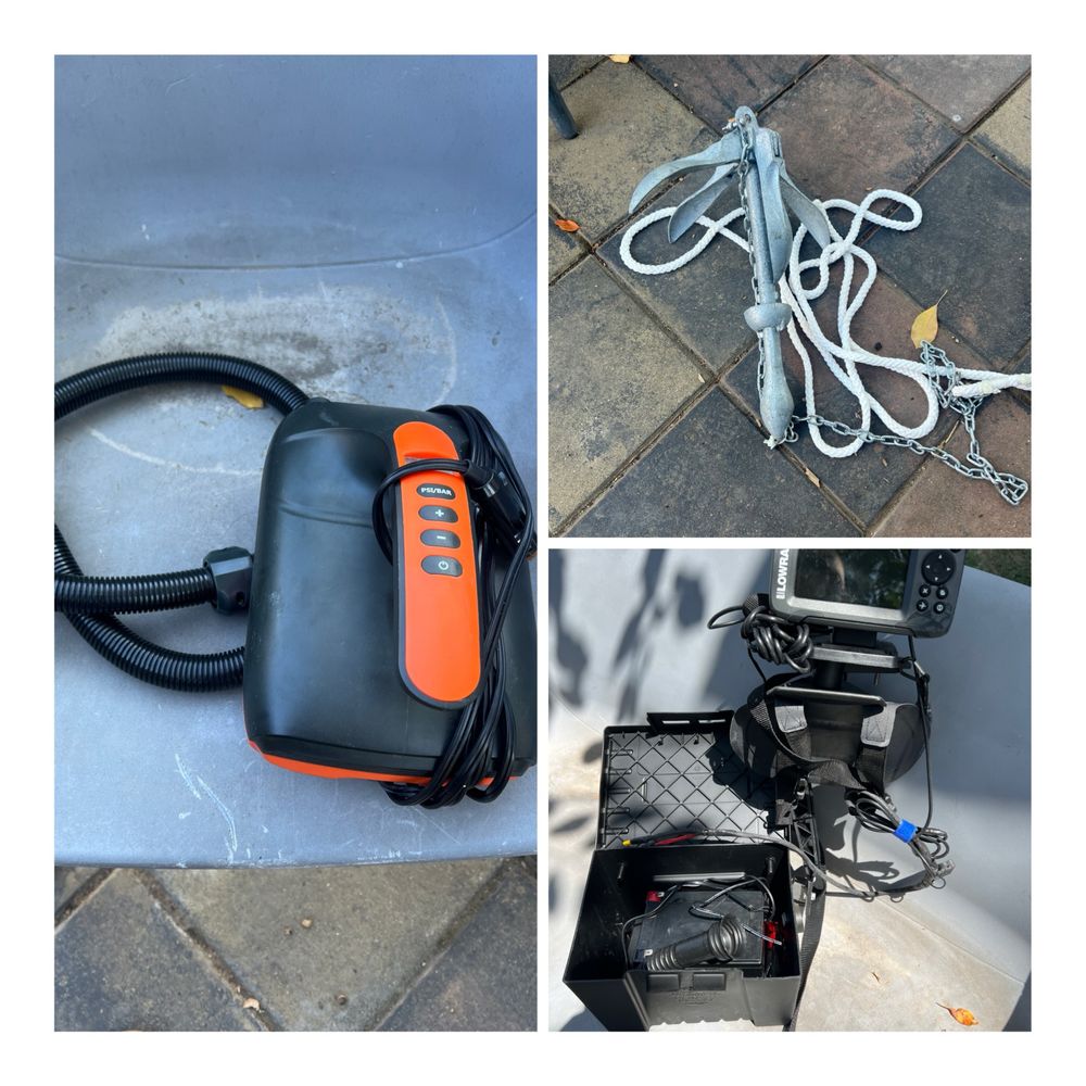 Barca pneumatica Allroundmarin Kiwi 280 +Podina Tego An fabricație 2022 Specificatii Lungime 280 cm Latime 155 cm Culoare Gri Greutate 38,3 kg Capacitate 3,5 persoane Numar camere aer 3 + 1 chila gonflabila Diametru tub 43,5 cm Capacitate incarcare 500 kg Putere motor maxima 7,4 kW / 10 CP Greutate maxima motor 55 kg. Motor Suzuki 6 HP pe carburație în stare impecabilă foarte puține ore de utilizare An de fabricație 2006 Motor electric barca Minn Kota Endura Max 40lbs SONAR LOWRANCE HOOK2 cu prindere pe balon plus acumulator Ancora 4 kg Pompă electrică Fox Barcă folosită doar în concedii în Grecia