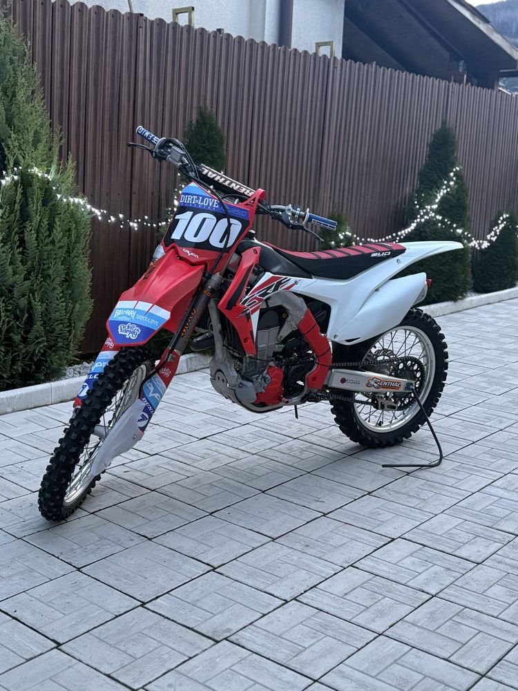 Se vinde Honda crf 450R din anul 2016 , stare impecabilă Motocicleta se prezintă in perfectă stare , merge perfect , s au investit foarte mulți bani Nu răspuns la genul de mesaje ,,ultimul preț Proba doar cu banii în mână 149 ore în creștere Recent adusă din Germania Furci Showa pe aer cu kit racing miro Shock Kyb pe aer cu diverse reglaje Low speed compresion high speed compresion și Rebound Motorul beneficiază de 3 mape putere Soft standard Advanced Cauciucuri 80% Toate consumabilele noi Full protecții Protecție disc acerbis Protecție cadru Polisport Protecție magnetou / ambreiaj polisport Roți 21/19 Șa bud racing Radiatoare Honda într-o stare impecabilă Filtru aer curățat după fiecare ieșire și pus altul nou la 4 ieșiri În cutie și în motor se folosește doar motorex 10w-50 cross power Merge impecabil și se aude impecabil Pornește la prima pedală rece cald nu întrerupe nu dă rateuri merge impecabil Este modelu de America cu 2 tobe Motorul nu a fost abuzat și a văzut numai plimbări Prefer comunicarea la telefon Preț negociabil în limita bunului simț Prețul pleacă de la 3500 Locație Deva jud Hunedoara