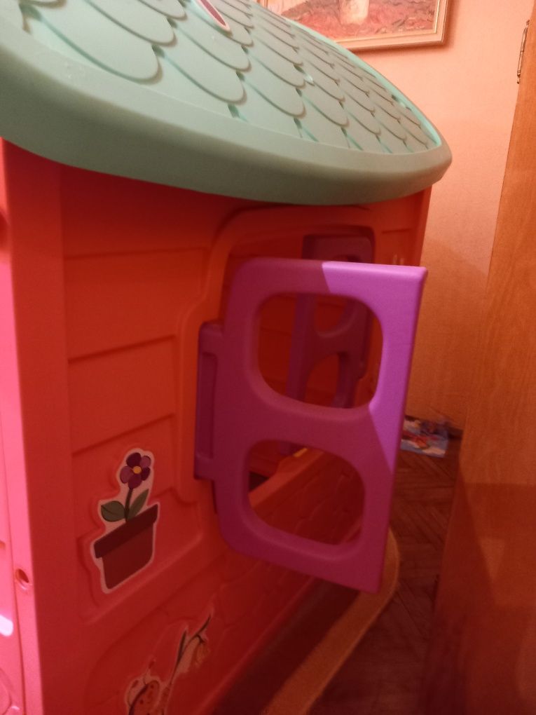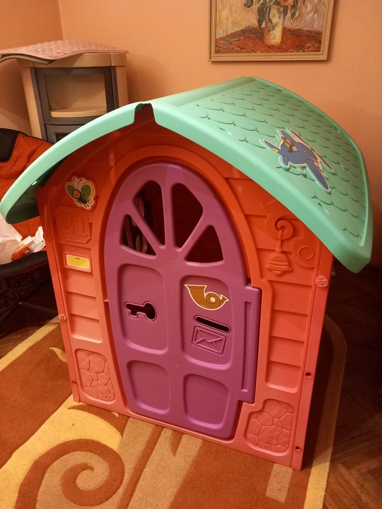 Casuta draguta pentru copii, demontabila, in stare foarte buna.Ridicare personala deoarece este mare.Lungime 100 cm,latime 90,inaltime maxima 117 cm.