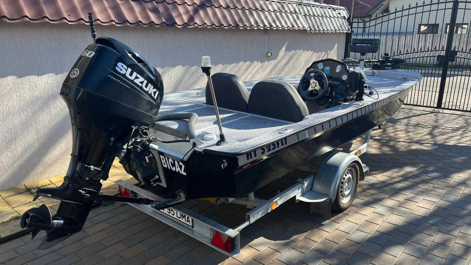 Vand Barca Bassboat HY 525 FLY 2021, 520 cm lungime, 190 cm latime + motor Suzuki 60hp, an 2021, 250 ore functionare. Motorul este in perfecta stare de functionare. Barca se vinde cu motor electric Minn Kota terrova 55lb + baterie rebelcell 140 ah ( 12 v ) si sonar Hummindbird Helix 10 ( chirp mega SI+, DI+, GPS G4N ). Peridoc Remotrailer, 2022, cu role. NU SE VAND SEPARAT!!!