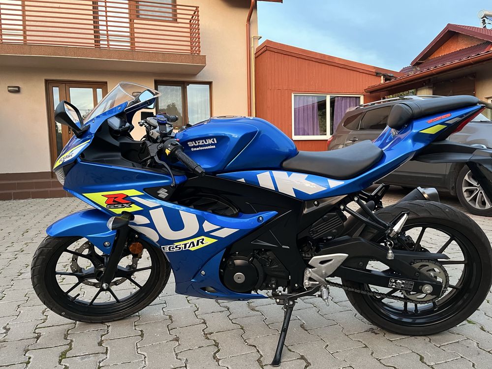 Vand suzuki Gsxr 125 Motocicleta se poate conduce cu permis de 16 ani. Am cumparat o de la reprzentanta Suzuki Dageco din bucuresti unde am si facut si toate reviziile , detin inca toate facturile de la fiecare revizie sa se observe ca este un motor întreținut . Sunt primul proprietar. Motocicleta vine cu 2 chei keyless go , lantul a fost uns si curatat la timp sau dupa fiecare ploaie . Am ales motocicleta asta pentru ca are o sa joasa , este usoara si se manevreaza extrem de usor. Si pentru raritatea acestora pentu ca am vrut sa ies in evidenta si sa nu vad sute motocilete pe strada ca a mea. Modelul GSX R 125 2024 este ultimul deoarece nu se mai fabrica nicio motocicleta modelul sport (R) in momentul actual.