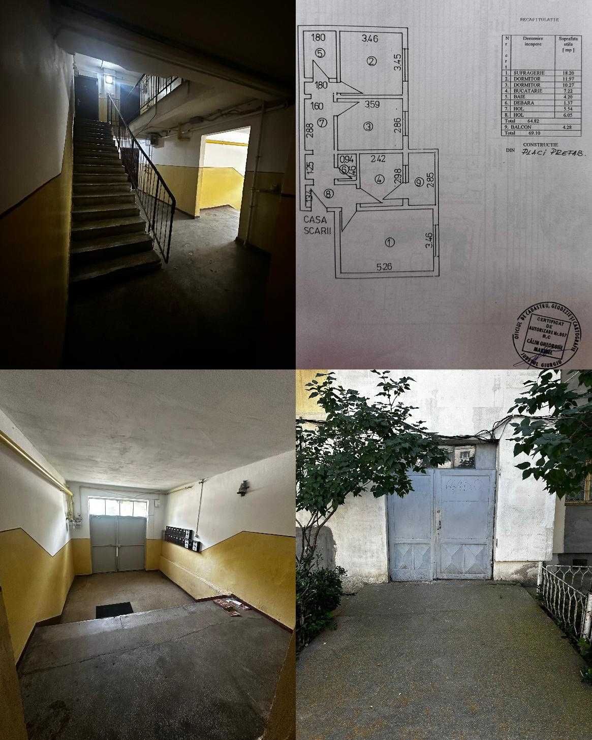 Apartament 3 camere de vanzare,situat pe Sos. Bucuresti,vis a vis de 2 Papuci,la parter este cabinetul de recuperare fizica ,scara curata cu vecini linistiti. Apartamentul se vinde complet mobilat si utilat,fix ca in poze. 70mp utili, compartimentare decomandata 2 dormitoare,1 baie, bucatarie, sufragerie si balcon. Apartamentul dispune de urmatoarele -Mobilat si utilat complet,totul perfect functional(aragaz, hota, frigider si masina de spalat Samsung,etc) -2 aere conditionate noi ,unul pe hol si unul in sufragerie(detin bonurile) -Centrala proprie pe gaz Vaillant( schimbata anul trecut-detin toate facturile) -apa individuala -instalatie electrica schimbata(cupru) -acoperis facut prin asociatie (tot etajul) -loc de parcare inclus in spatele blocului -asociatie de propietari.