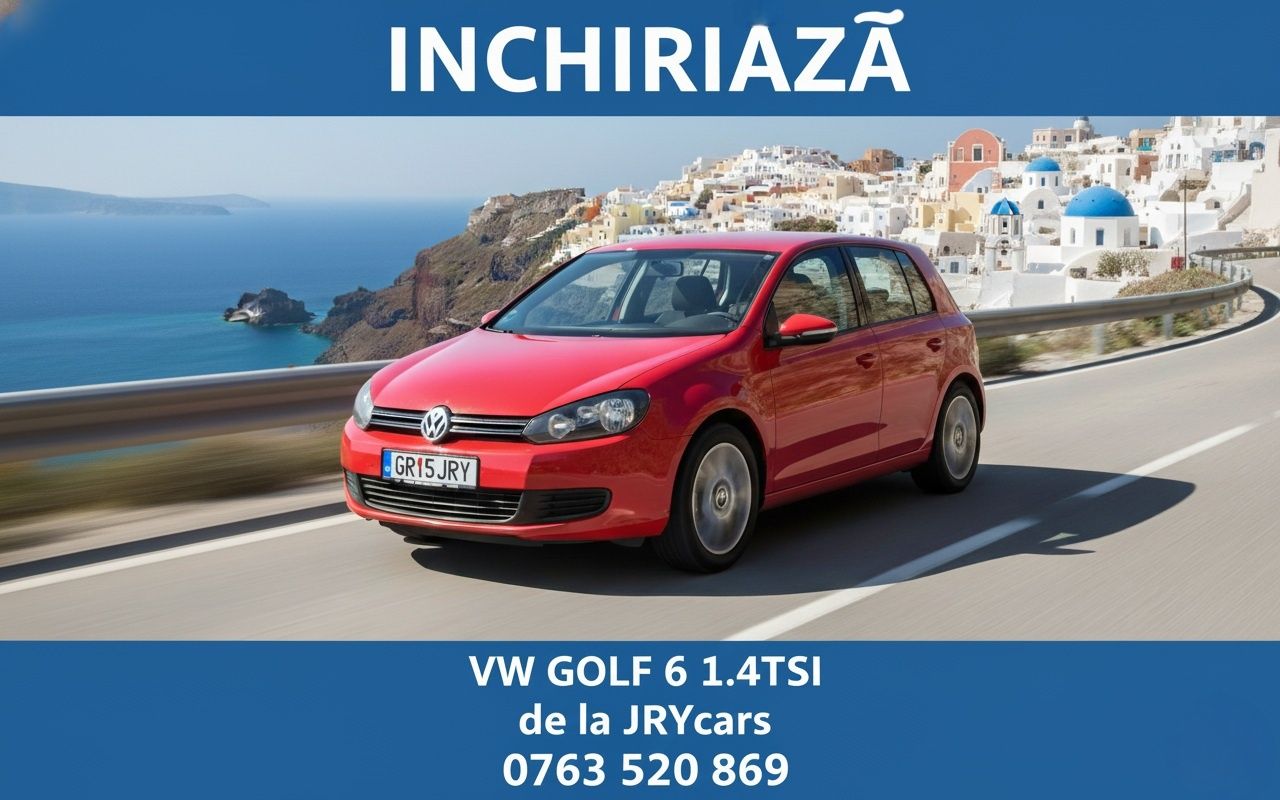 Firma JRY CARS oferă spre închiriere VW Golf 6 1.4TSI TEAM Cerințe -Garanție 1000 RON returnabilă -Permis categoria B vechime minim 3+ ani + CI -Pretul este de 150 RON - 1 zi -Limita KM - 300km zi -Ce v-a depăși se taxează cu 1RON - 1 KM VOLKSWAGEN GOLF 6 1.4TSI -An 2011 -Motorizare Benzină -Capacitate cilindrica 1400 CMC -Consum 6% -Navigatie -GPS -Tractiune Fata -Cutie Manuala -Aer Condiționat- Functional -Nr. locuri 5 -Bancheta spate rabatiabila -Bluetooth -Camera marșarier Oferim -Pt a avea șofer se v-a mai adăuga încă - 250 RON in plus față de chiria zilnica a mașinii. -Scaun copil (ISOFIX) -Cameră de bord (față + spate omologate RAR) -Masina prezinta asigurare + rovineta -Kit complet pană + compresor + spumă + roată de rezerva -Trusa medicala + triunghi + extinctor