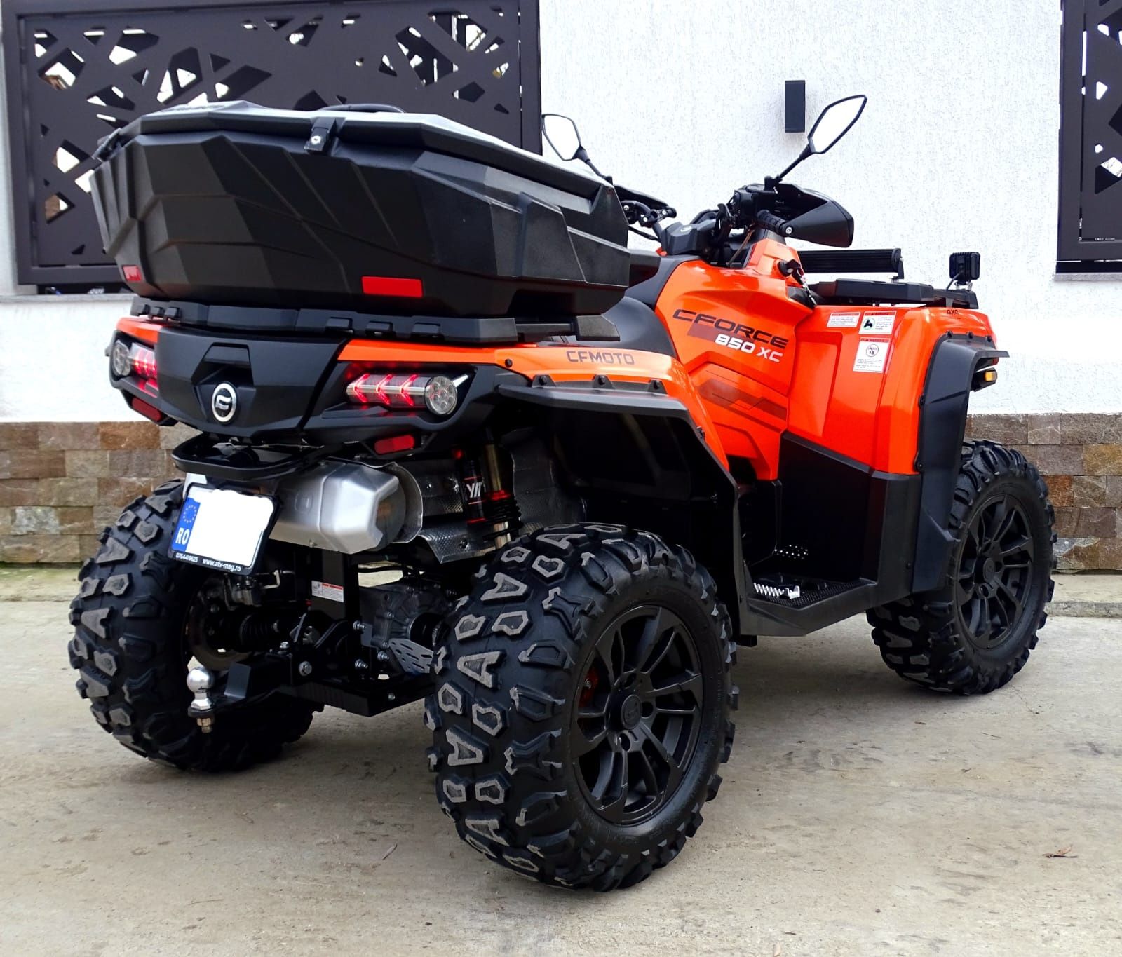 Atv Cforce 850xc EPS - garantie ! Prima înmatriculare aprilie 2024 1800 km ! 2 revizii efectuate până in prezent-Carnet service. Un singur proprietar pe carte. Înmatriculat la poliție cu număr negru. Stare Tehnica ,estetica 10/10 Atv ul se prezintă ca NOU !! Folosit doar pentru plimbări de recreere ,și nu în regim offroad ( se poate observa și în pozele atașate ) Servodirecție EPS Lada bagaje Ledbar central și alte doua extreme. Distantiere față +spate. Overfendere față +spate. Spătar pentru cel de al doilea pasager Suspensii independente, reglabile cu amortizoare pe gaz piggy-back Jante aluminiu Apărători mâini Protecții brațe din aluminiu Cui remorcare Spătar pasager Troliu Discuri de frână ventilate Afișaj de bord LCD Motor 2 cilindri, 4 timpi, 8 valve, SOHC, EFI Putere 67 CP Capacitate 800 cmc Combustibil benzină Cutie de viteze automată CVT Rezervor 30 l Răcire cu lichid Transmisie pe cardan La perfectarea actelor se oferă fiscal pe loc. Zero, șapte, cinci, unu, patru, doi, șapte, zero, opt, doi.