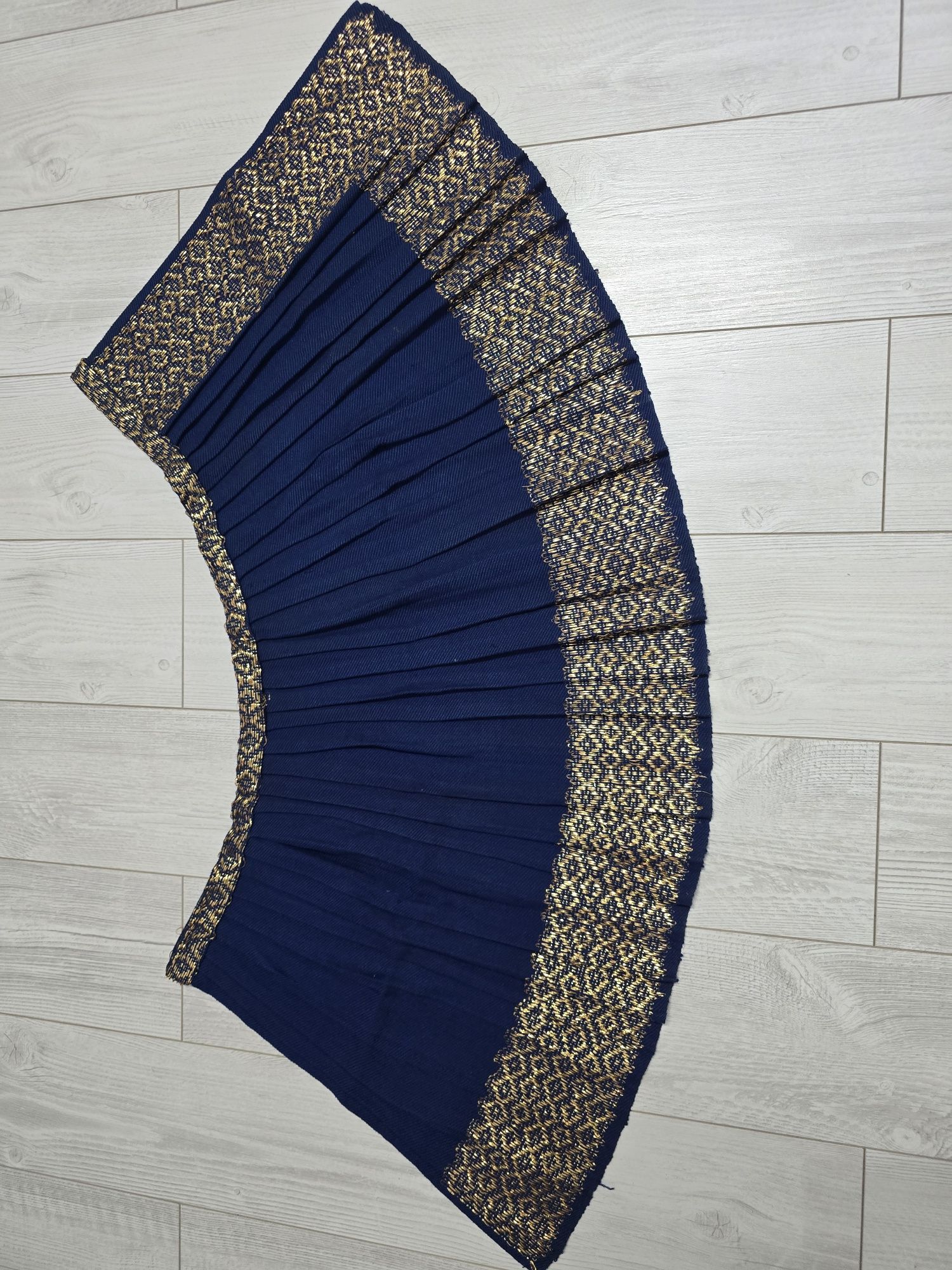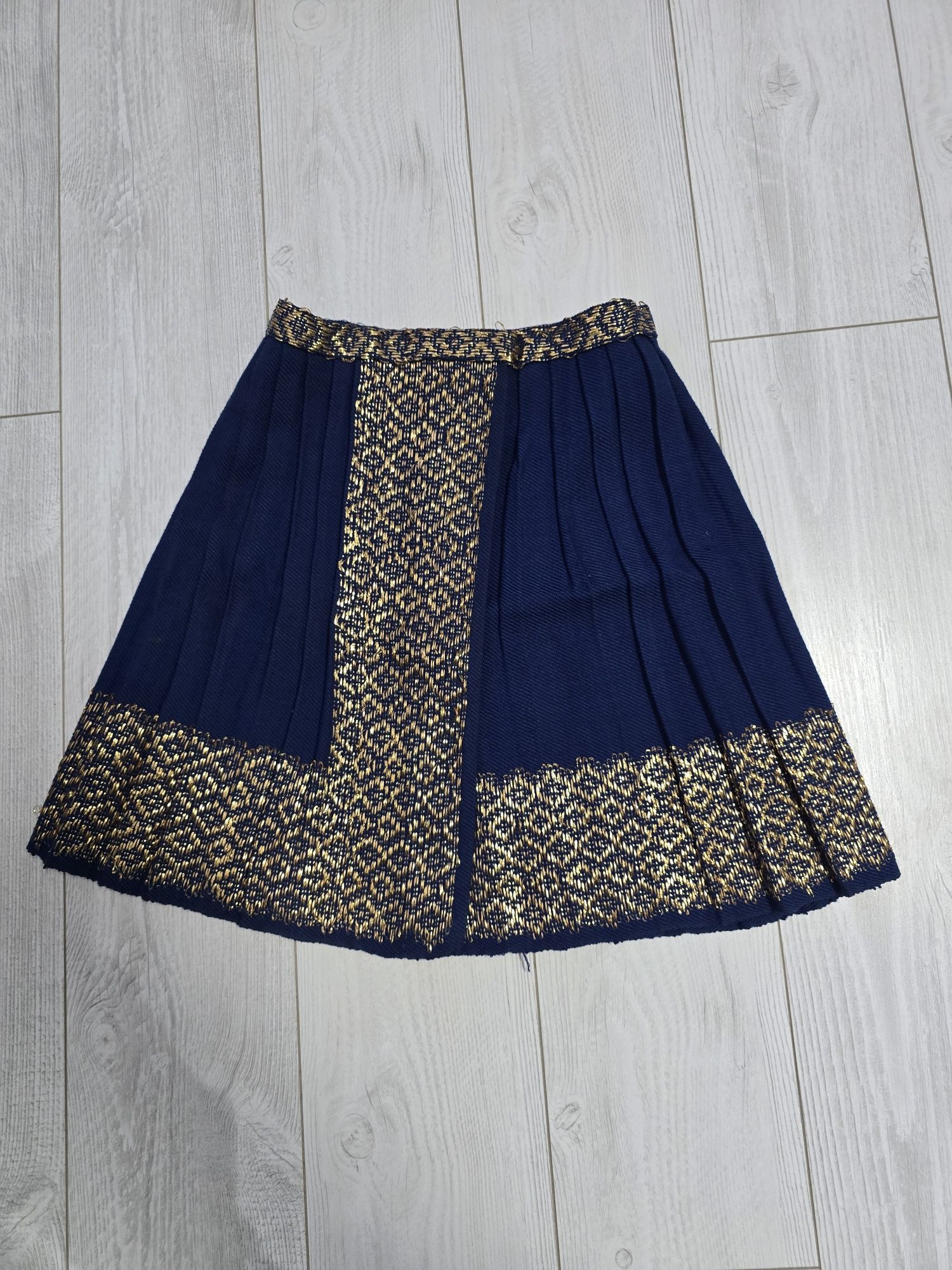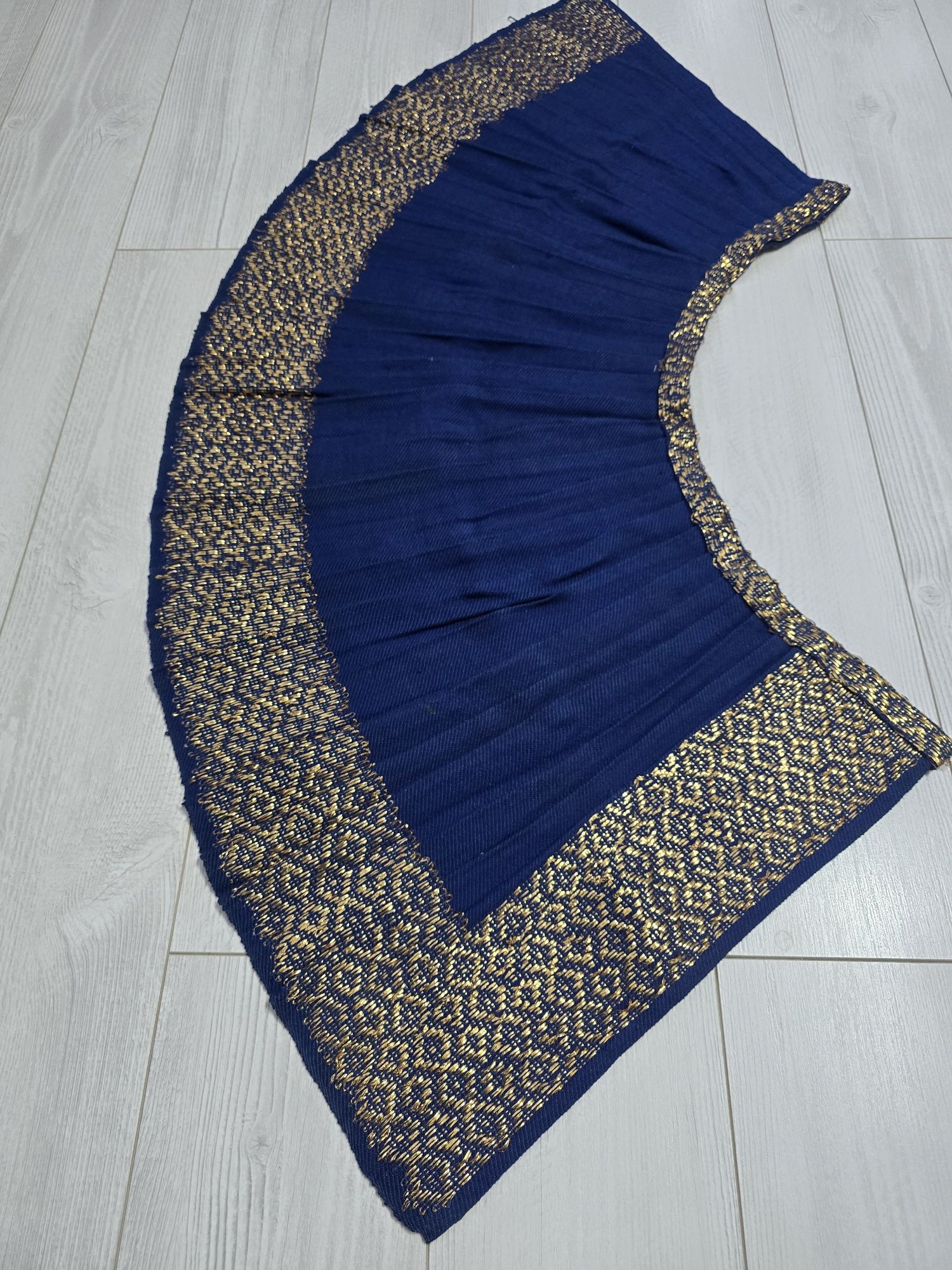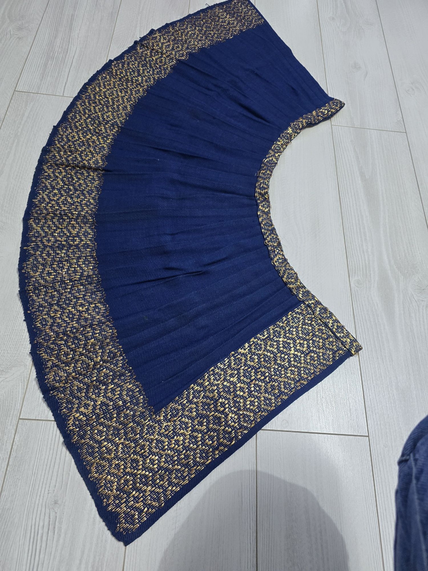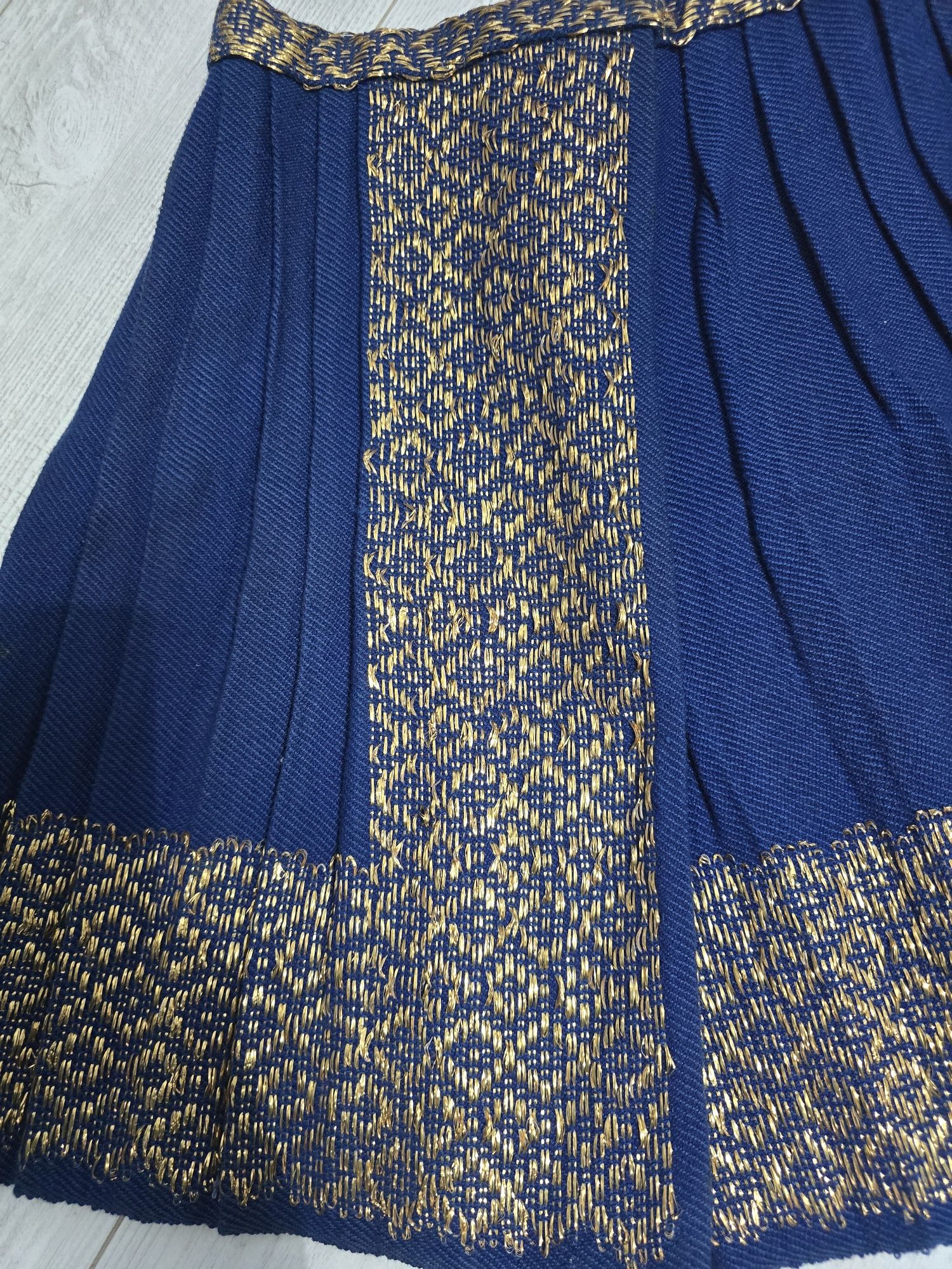 Vâlnic pentru port național original vechi copii intre 5-8 ani fără defecte ,arată foarte bine Dimensiuni lungime- 42 cm Mijlocel-66cm Lățimea fustiței-1,50m Fustița este plisată cu lucrătură de lam auriu iar nuanța stofei este pe culoarea albastru