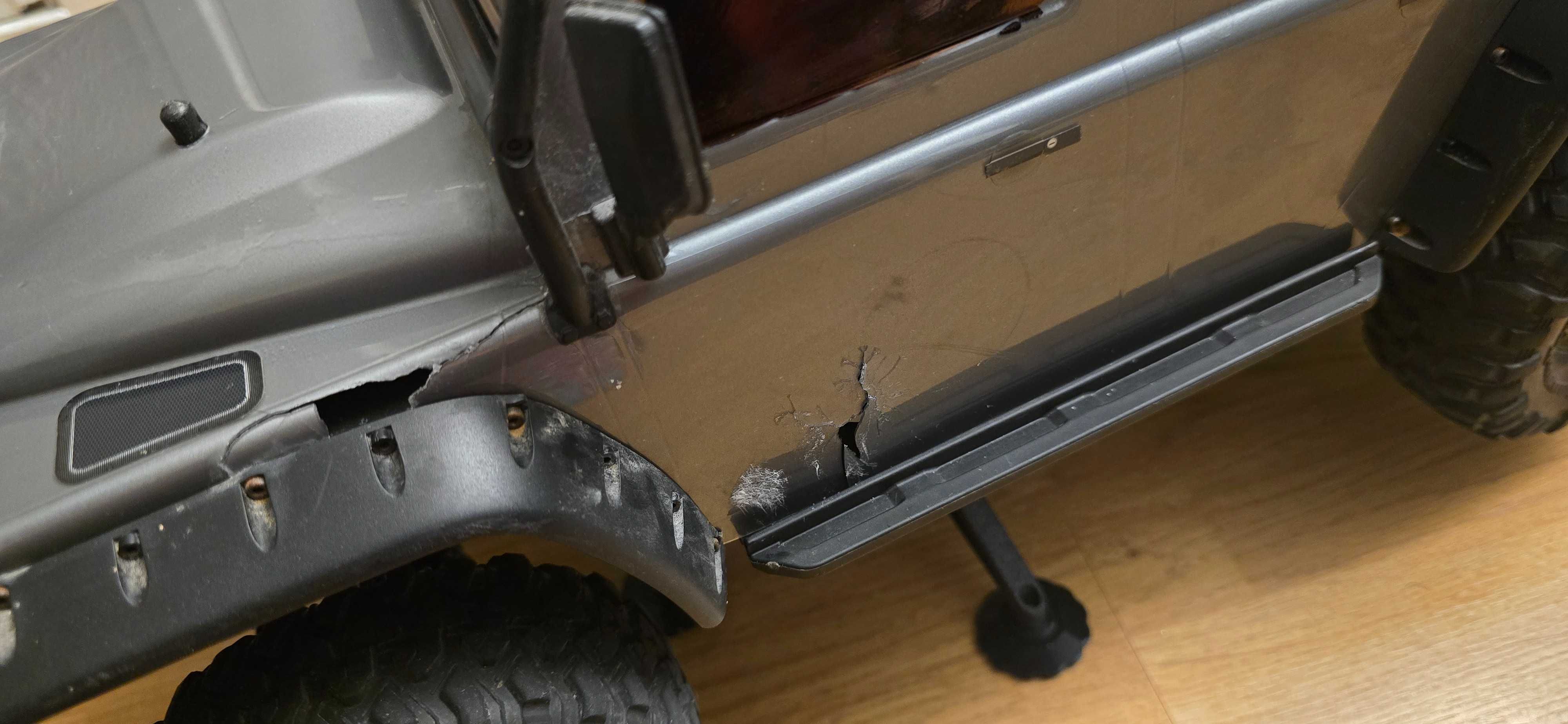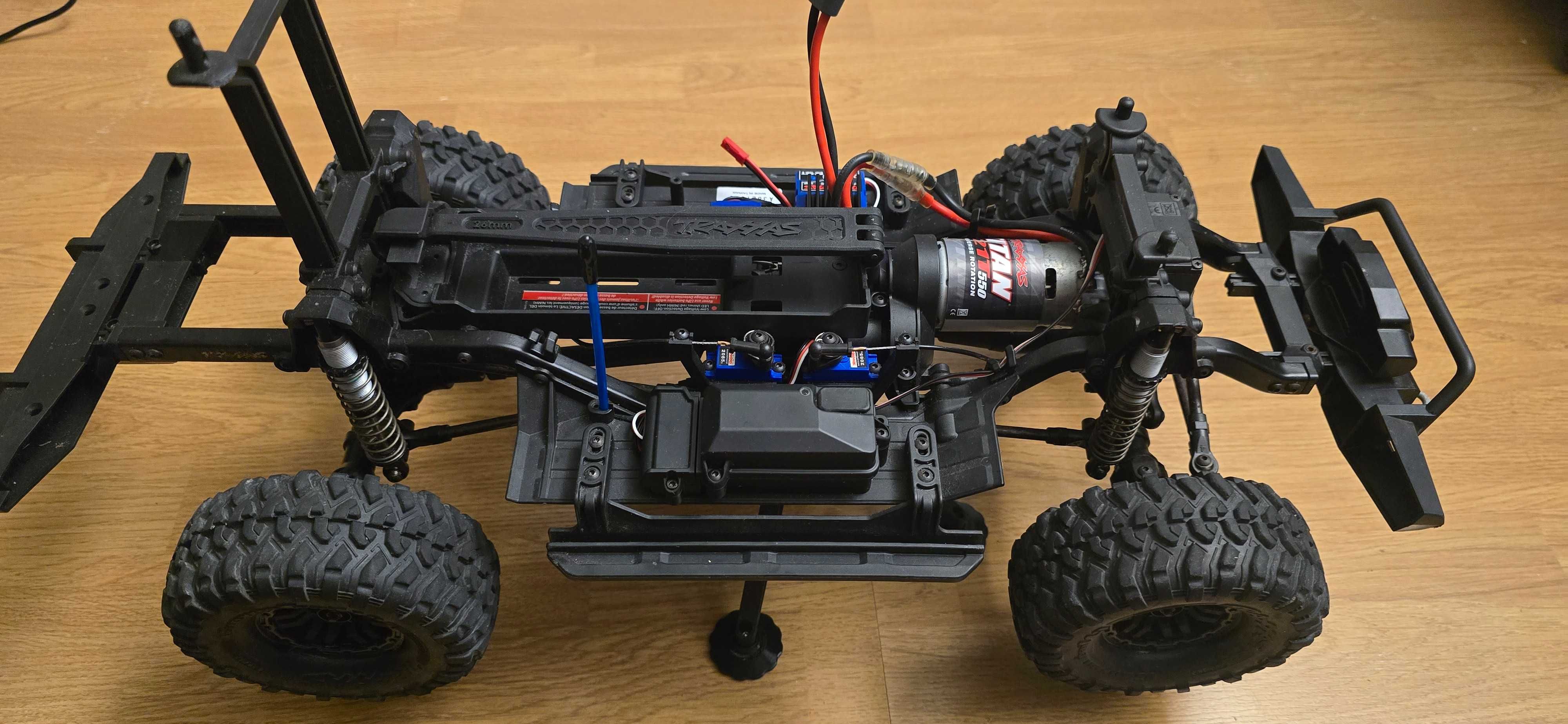 Traxxas TRX-4 Defender -Diferențiale blocabile față și spate. -Trepte de viteză mari și mici (High și Low Gear). -Punti portal pentru gardă la sol maximă. -Unghi de bracare (virare) de 45 de grade. -Modul "Crawler" (pentru teren dificil) XL-5 ESC și motor 21T 550 pentru cuplu maxim. -Include (Vine cu) -3 bucăți de baterii 3S LiPo 1.3 Ah cu un încărcător inteligent. -Manual. -Setul de scule original. Totul funcționează conform specificațiilor, mașina este aproape nouă, caroseria (body) nu este în stare bună din cauza unui accident de livrare (transport).