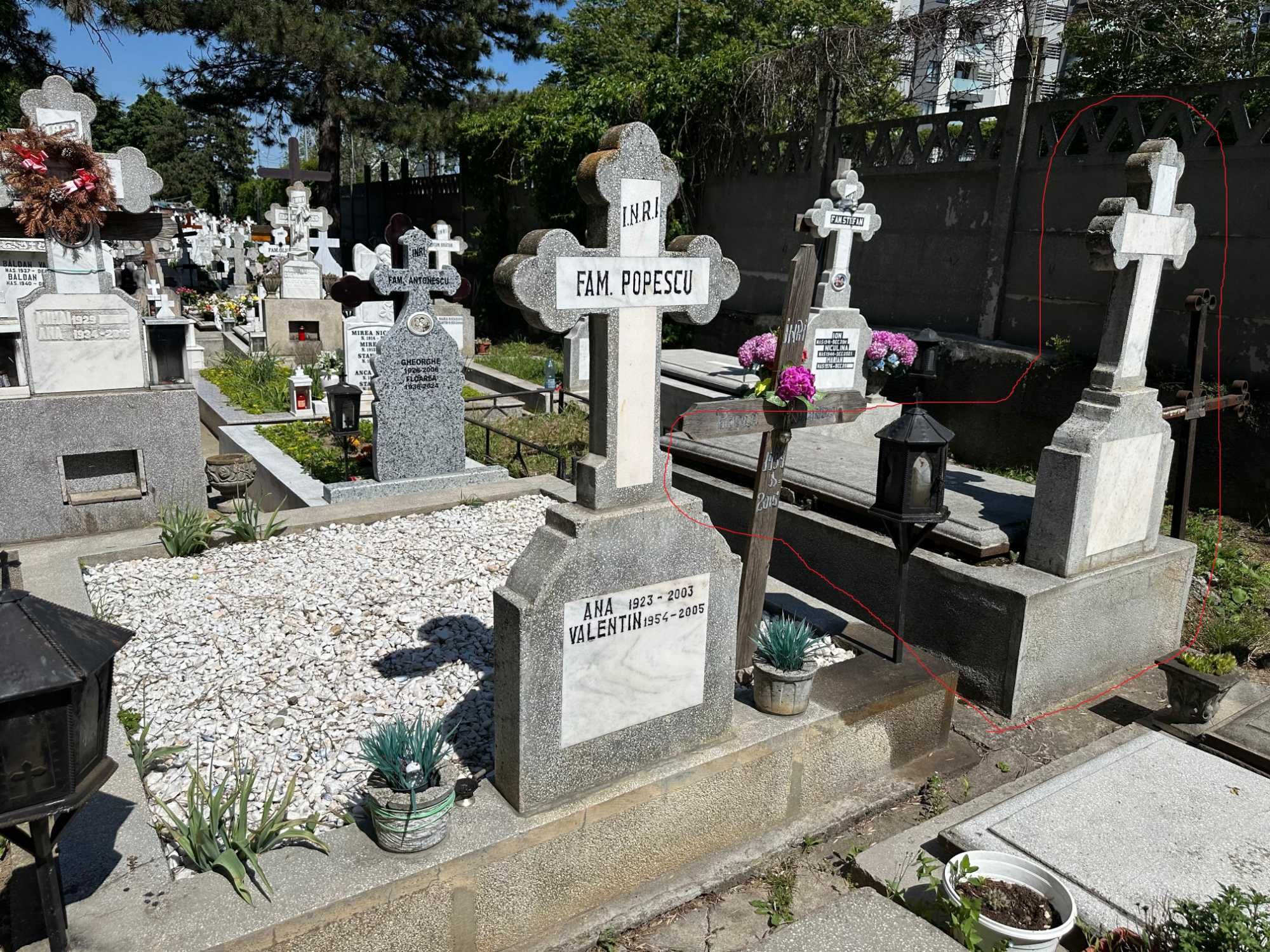 Vând loc de veci situat în Cimitirul Bucureștii Noi, zonă bună și îngrijită, aproape de intrare si aleea principala. Locul este amenajat, dispune de două cripte și cruce din piatră, conform fotografiilor.