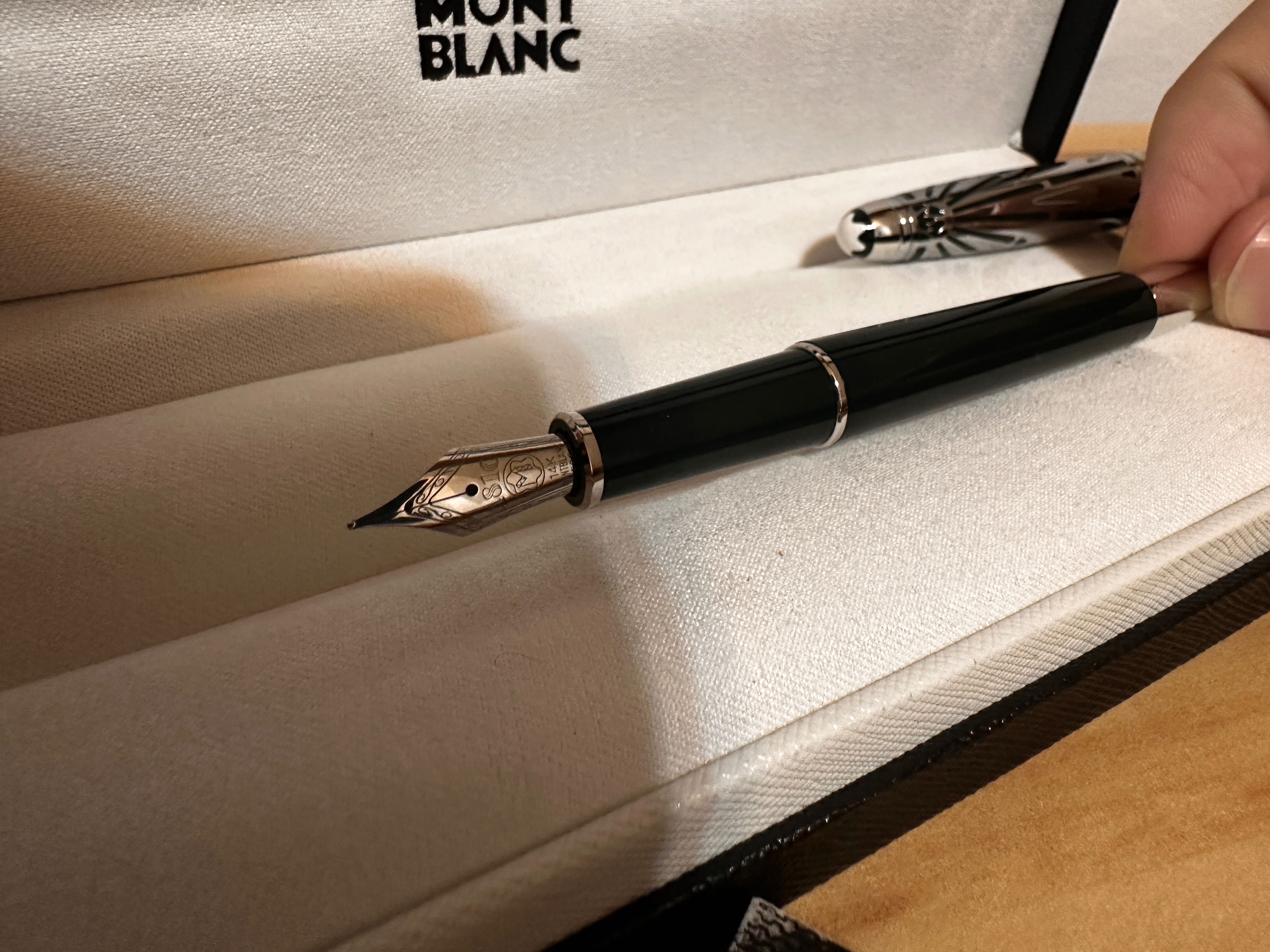 Stilou Montblanc Meisterstuck 100 years Origin Collection, negru/verde închis, Fountain Pen, Cutie, nou, nefolosit. Se poate folosi cu cerneala prin rezerva reincarcabila atasata, sau se poate folosi cu rezerve. Ridicare personala din Bucuresti sau livrare in toata tara prin Fan Courier cu deschidere colet, aprox. 30 lei.