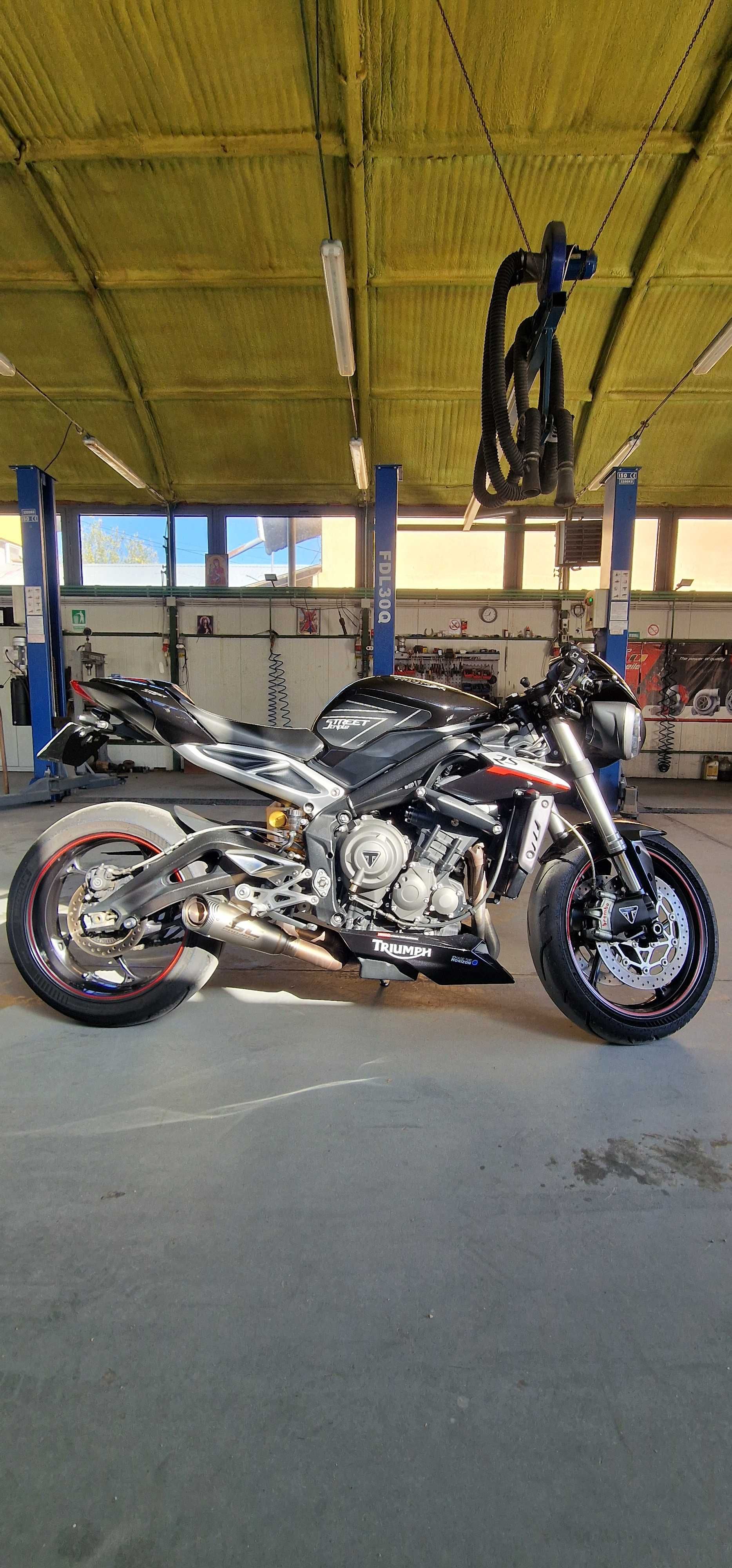 OFERTA 6500 pana in ianuarie ! Vand sau schimb cu KTM 690 smt sau Husqvarna 701 supermoto Triumph Street Triple 765 RS 2017 50k km In plus fata de versiunea standard - oglinzi bar-end (originale Triumph) - 121cai cu quickshifter up - Mai multe optiuni in Calculator (printre care track mode si lap timer) - Furca ShowaBFP si hlins spate - Frane brembo M50 - Aspect Speed triple(mai agresiv) Extra Filtru aer sport - recent revizuit curatat dat cu ulei Kit conversie semighidoane Evacuare SC project + cea originala 2 sei - una confort una track sa pasager si monopost parbriz inalt plus standard cauciucuri 2024 upgrade faruri led 2 chei istoric din Germania cu tot cu supape si furca Ultimul service Dec 2025 - complet - ulei filtre, antigel, lichid frana, placute, revizie etrieri, rulmenti roata, kit lant