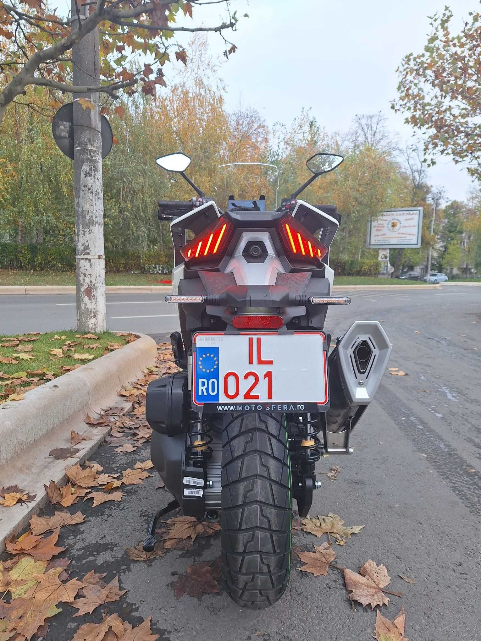 Garantie 2 ani sau 30.000 km. Pret in Showroom 6.500 EURO An de fabricatie Noiembrie 2025 Capacitate motor 368 cm Putere 39 CP Racheta Viteza maximă 150 km/h Accelerație 0 100 km/h 9,3 secunde MOTOR 4 Timpi, Euro5, 1 Cilindru cu 4 supape DOHC (de ultima generatie) - Alimentare prin Injectie Bosch - Racire cu lichid / Pornire electrica - Putere 39 CP / 7500 rpm - Cuplu 40 Nm / 6000 rpm - Cutie CVT de inalta performanta - Roți ușoare cu spițe de 17 /14 cu Anvelope mixte adventure - Frana fata disc 300 mm + ABS - Frana spate disc 240 mm + ABS + TCS ( Controlul Tractiunii ), decuplabil pentru off - road. - Suspensie spate - Dubluamortizor reglabil - Ghidon reglabil pentru o pozitie buna de condus - Inaltime sa 790 mm - Greutate la gol 186 kg - Rezervor 17.5 L - unul dintre cele mai mari rezervoare din clasă - Consum 3.5 l / 100km (autonomie reala intre 450-500 km) Dotari Premium Echipare Full - Keyless (actionare din telecomanda) cu imobilizator (cheia este o bratara) - Doua moduri de functionare Eco si Sport - Mansoane incalzite din fabrica montate - Protectii de maini (handguard) - Blocaj ghidon electric - Leviere ajustabile - Comenzile de pe ghidon sunt iluminate permanent cu lumina de fundal - Furca telescopică inversată de 41 mm oferă reglare a amortizarii la revenire și la compresie. - Amortizoare duble din spate cu rezervor extern de azot - Bordul este un Ecran TFT de 8 inchi multifunctional + Screen Mirroring (Waze, Maps, youtube, etc ) - Busonul rezervorului se deschide electric - Camera video fata - spate cu aplicatie pe telefon (inregistreaza tot) - Proiectoare din fabrica omologate - Lumini Led (fata, spate, semnale) - Engine Guard din fabrica - Protectii Radiator - Scut de protecție din aluminiu - Spatiu generos sub sa pentru 2 casti - Sa cu deschidere electrica de pe ghidon - 3 Priza USB (in Sa, in Torpedo, si sus pe Ghidon) - Senzori presiune roti - Parbriz reglabil pe 5 pozitii - Incarcator de baterie inclus in pachet (pentru stationare pe timp de iarna, nu se mais coate bateria) - Modul bluetooth integrat, se pot prelua apeluri folosind comenzile de pe ghidon - Scarite metalice pentru pilot si pentru pasager (pentru mers Offroad) - Cric cu frână de parcare Concurenti Honda ADV350 7500 EURO SYM ADX TG 7300 EURO SYM ADX 300 5300 EURO (dar este net inferior) Yamaha XMAX 300 7600 EURO (dar este net inferior) BMW C 400 X 7500 EURO Burgman 400 8200 EURO (dar nu e de Aventura) ZONTES este una dintre mărcile cele mai renumite ale companiei Tayo Motorcycle Technology , unul dintre cei mai mari producatori de motociclete din Asia infiintat in 1992 si cu o capacitate de productie de peste 1 milion de unitati pe an. Principiul de dezvoltare al companiei este invenție și inovație, avand la activ 256 de brevete de design, 121 de brevete pentru modele utilitare și 36 de brevete pentru invenție. Dezvoltare strategică a companiei presupune concentrare pe descoperirea și cercetarea noilor tehnologii pentru structura materialelor, procesul de fabricație, finisarea de precizie, controlul inteligent, conservarea energiei și protecția mediului, fiind premiata de 3 ori pentru inovatie tehnologica. Calitatea fabricatiei, a materialelor si a finisajelor au determinat succesul modelului G368 in tari precum Grecia, Anglia, Franta iar lista dotarilor standard este cea mai mare posibila. Scuterul este echipat cu un motor in 4T de 368 cmc, cu patru valve, DOHC, un motor cu un singur cilindru cu un raport ridicat de compresie. Cilindrul de aluminiu este tratat cu carbură de siliciu, proiectat pentru disiparea căldurii, durabilitate și performanța. Motorul dezvolta 39 CP / 7500 rpm si un cuplu de 40 Nm / 6000 rpm fiind cel mai puternic motor de scuter in gama de 400 cc. Greutatea la gol de numai 186kg, saua la inaltimea de 790 mm, rezervorul de 17.5 L, platforma extinsa pentru picioare il fac foarte comod si usor de manevrat atat in oras cat si in off-road.