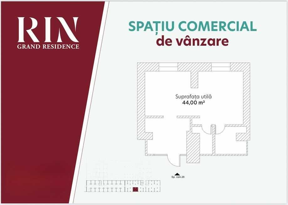 Vă oferim spre vânzare un spațiu comercial situat în Galeria Comercială a complexului RIN Grand Residence, ideal pentru activități medicale, de înfrumusețare sau birouri. Direct proprietar, persoana juridica nu se aplica TVA, taxare inversa, este liber din 15 ianuarie 2026. Detalii cheie Suprafață utilă 44 mp. Compartimentare 3 camere (fostă clinică medicală). Utilități rare Printre puținele spații din galerie dotate cu apă curentă și canalizare proprie. Confort Sistem de climatizare funcțional. Localizare Flux de clienți asigurat de rezidenții complexului și vizitatorii galeriei. Spațiul este pregătit pentru utilizare imediată, beneficiind de un finisaj modern și vizibilitate în cadrul galeriei.