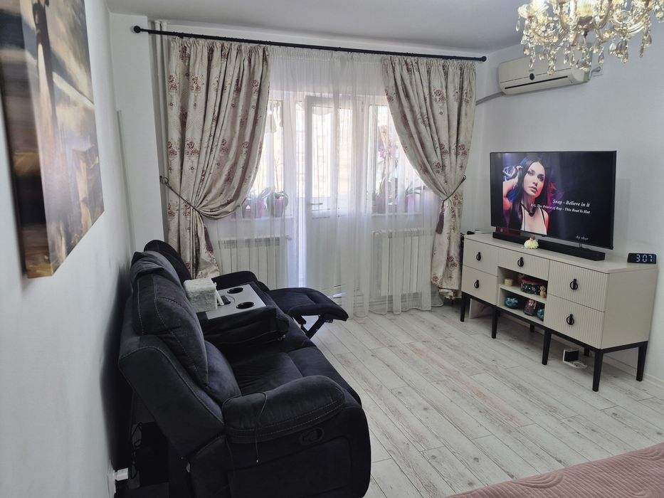 Particular vand apartament 2 camere 58 mp, etaj 4 din 9, bloc din 1986, balcon închis, centrala, finisat cu bun gust, se vinde cum se vede in poze (mobila + electrocasnicele din bucătărie), mai multe poze pe WhatsApp. Preț negociabil !! Exclus agenții !!