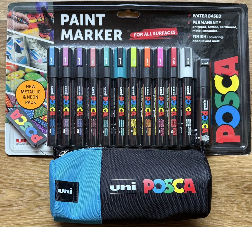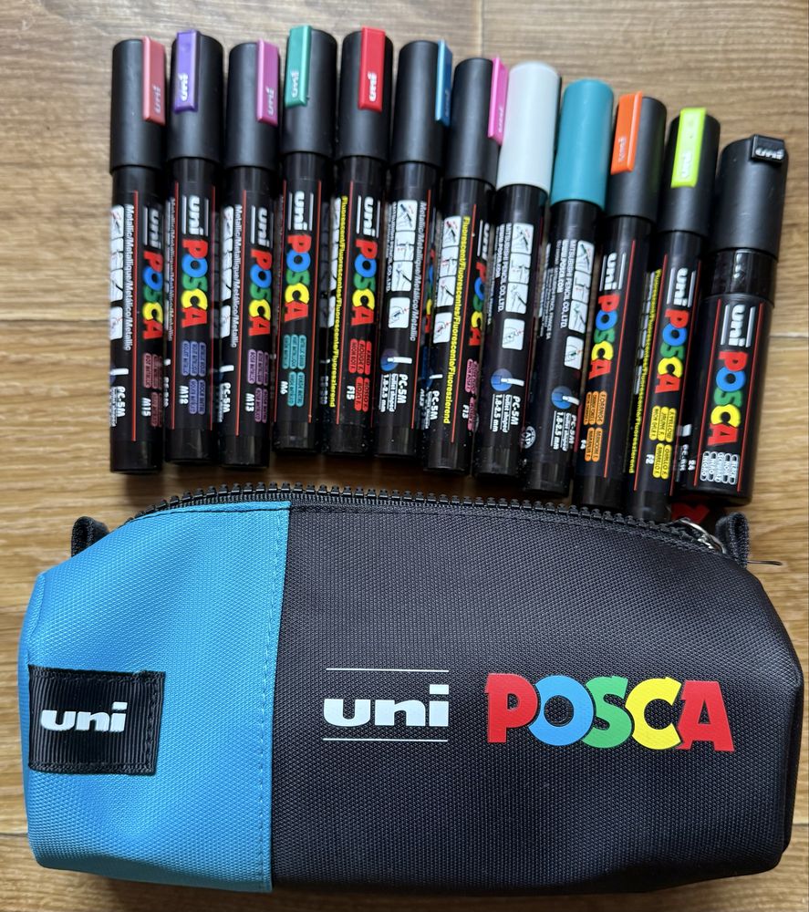 Penar nou posca si 12 carioci posca noi penarul contine intreg setul din imagini