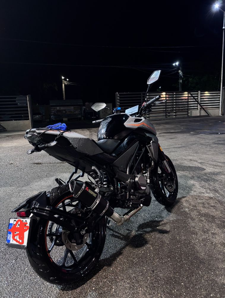 Motocicleta CFMOTO 300NK, impecabila cu 3700km usor in crestere, cu GARANTIE 5 ani, revizie facuta la reprezentanta. Fara accidente, fara scapari pe jos. + CARTE SERVICE Se vinde pentru ca vreau sa trec pe ceva mai mare. -300cmc -30 cai -ABS fata-spate -racire pe lichid -lant curatat si uns la fiecare 400km (nu are niciun pic de rugina) -intretinuta foarte bine si s-a mers usor prin oras doar drum spre serviciu si inapoi -aplicatie pentru a vedea locatia ei -NAVIGATIE digitala cu GPS Are toata evacuarea schimbata si o detin si pe cea Originala, o pot schimba la cerere pentru ca se pune foarte usor inapoi. Nu se vinde cu quadlock. Accept orice proba (chiar si la reprezentanta) Nu fac schimburi. Pentru orice detaliu va rog sa ma contactati.