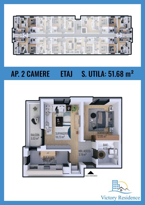 Pentru mai multe apartamente accesati site-ul Descoperă confortul și eleganța la VICTORY RESIDENCE REZERVELOR un ansamblu rezidențial modern, situat într-o zonă verde și liniștită din Militari-Roșu, pe Strada Rezervelor nr. 65. Victory Residence Rezervelor este compus din 3 blocuri de dimensiuni mici, cu un total de 181 de apartamente, oferind un mediu ideal pentru o viață confortabilă și liniștită. Apartamentele disponibile Oferim spre vânzare garsoniere și apartamente cu 2 camere, toate total decomandate, cu bucătării închise și balcoane generoase, perfect concepute pentru confortul familiei tale. Fiecare apartament este construit la cele mai înalte standarde de calitate, cu finisaje moderne și dotări de ultimă generație. Detalii tehnice Structura P+4 etaje+5 Retras, pe cadru de beton solid, cu compartimentare din căramidă Porotherm (interior și exterior). Izolație Polistiren de calitate superioară pentru eficiență energetică. Finisaje Gresie, faianță, parchet de calitate, obiecte sanitare (WC, cadă, lavoar suspendat). Încălzire Sistem de încălzire în pardoseală, cu centrala proprie pe condensare. Predare la cheie Apartamentele vor fi pregătite pentru a te muta imediat. Lift Inclus pentru un acces facil la fiecare etaj. Locație excelentă Situat într-o zonă rezidențială liniștită, dar totodată aproape de tot ce ai nevoie. Acces rapid la transport public La doar 10-15 minute de mers pe jos de stația de metrou Preciziei, iar în fața ansamblului vei găsi stații de autobuz (linie 478, 483, 278, 178, 138) și maxi-taxi, la doar 2-3 minute pe jos. La doar câțiva pași de toate facilitățile Parcul Comercial Militari (Auchan, Metro, Brico Depot, KFC, Decathlon, Bebe Tei, C&A, H&M, McDonald s, Starbucks), Cora Lujerului, Mall AFI Palace, Lidl, Mega Image, Complexul comercial La Strada, Piscina Aqua Garden Militari și multe altele. Școli, grădinițe, policlinică și alte facilități esențiale în imediata apropiere. Facilități și avantaje Acces la credit bancar acceptăm credit, fără rate la dezvoltator. Predare la cheie mută-te fără griji! Alege Victory Residence Rezervelor pentru un viitor mai bun și mai liniștit într-un ansamblu modern, într-o locație deosebită, aproape de toate facilitățile. Te așteptăm să descoperi apartamentul visurilor tale!