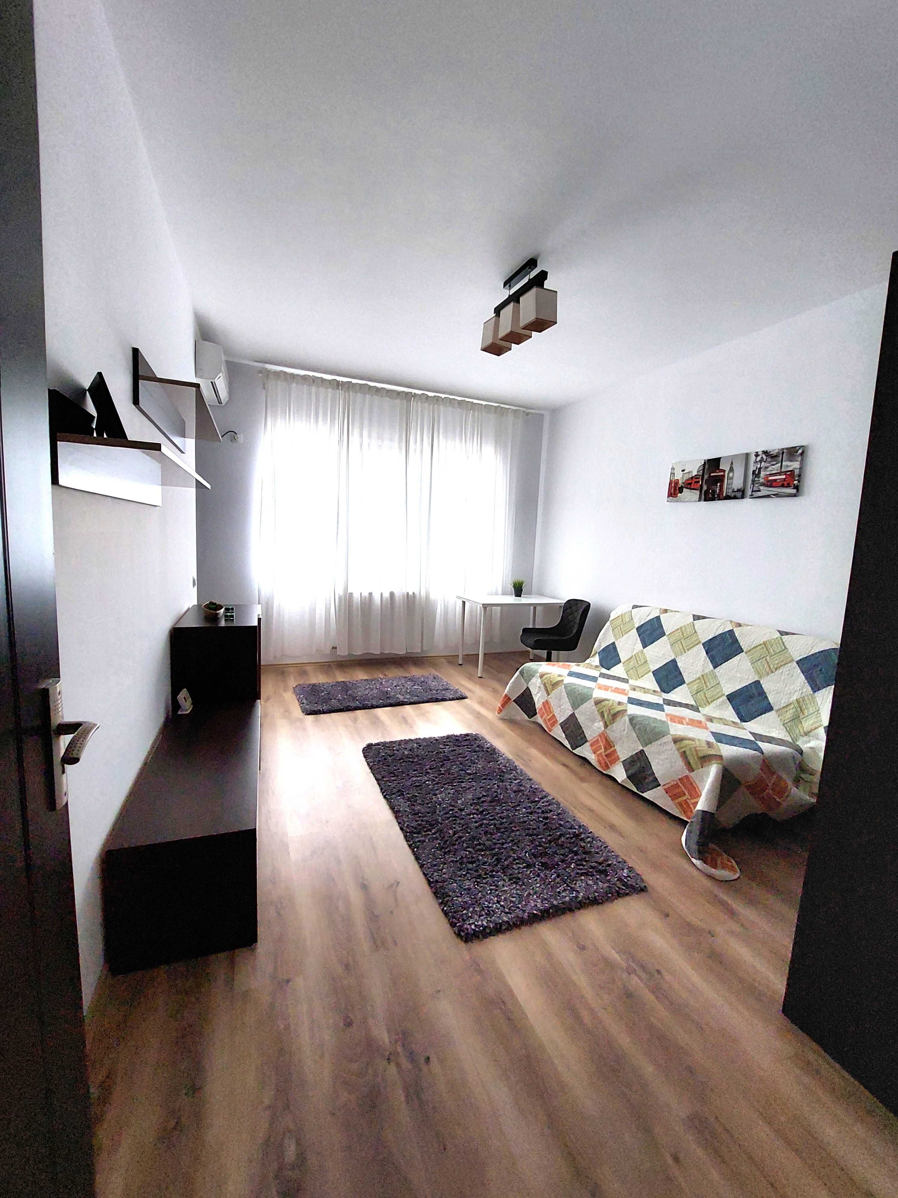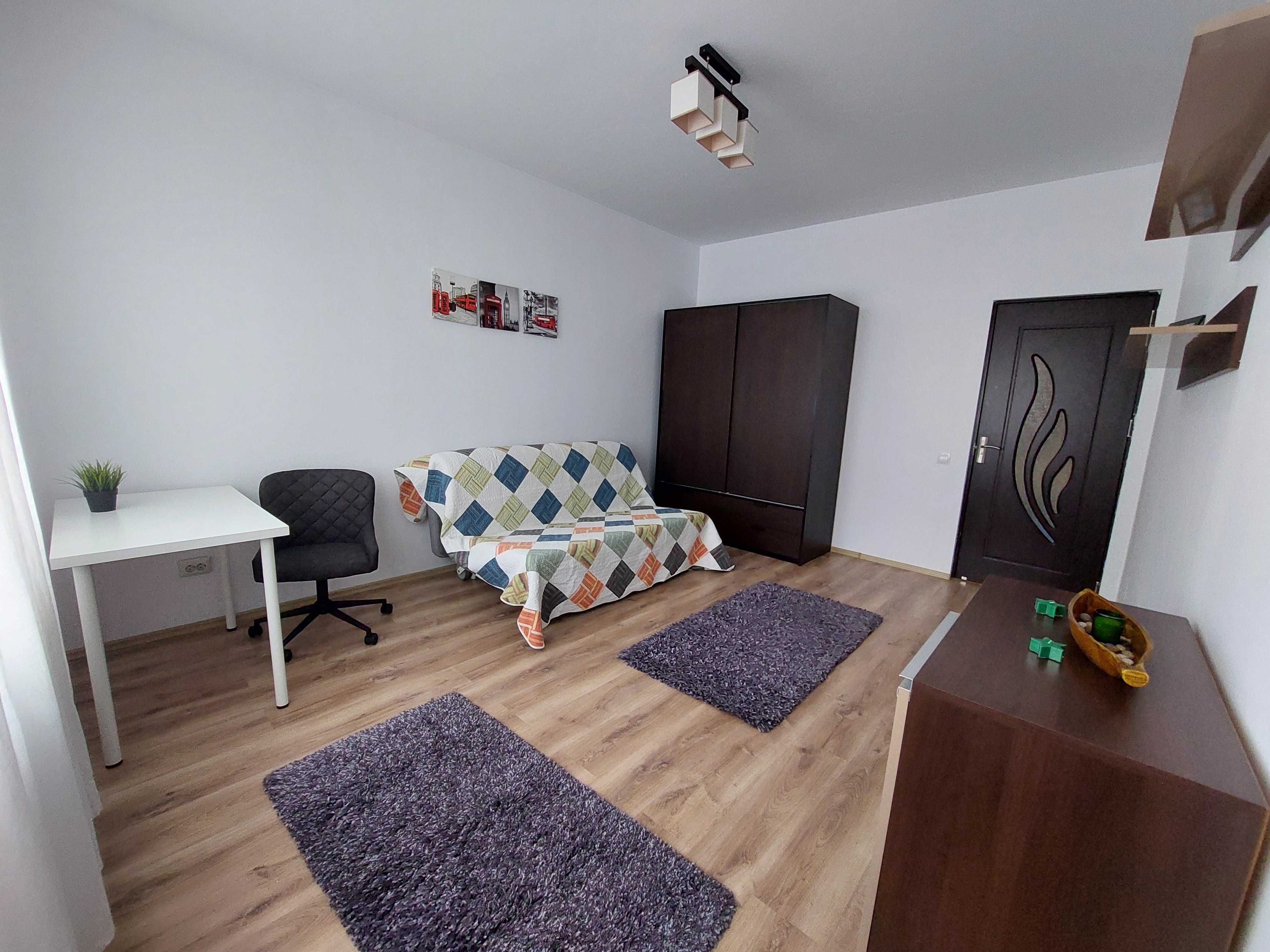 Proprietar, inchiriez garsoniera spațioasă situata in Complexul Plaza Residence (Strada Cupolei nr 5, lângă parcul liniei care se face acum) Apartamentul cu o camera este poziționat la etajul 11 din 12, cu balcon și vedere panoramică spre parcul Liniei care se amenajează acum. Scara este prevăzută cu 2 lifturi spațioase si camere de luat vederi. Blocul (construcție 2015) este situat vis-a-vis de Supernova Lujerului și Plaza Mall, la 3 minute de stația de metrou Lujerului si linia lui 41. Locuri de parcare sunt disponibile lângă bloc. Compartimentarea garsonierei este de tip decomandat, dispusa astfel living, bucătărie închisa, baie, terasa, hol acces. Proprietatea este complet utilată și mobilată. - canapea extensibila Ikea cu saltea pentru dormit zilnic 160x200 cm - 2 dressing-uri spațioase ( unul pe hol, unul în cameră) - birou și scaun de lucru - aer condiționat - mașina spălat - frigider - plită și cuptor electric încorporat - centrala de apartament Vecinătăți Plaza Mall, Parcul Liniei, AfiCotroceni, SuperNova, Universitatea Politehnică, Parc Moghioroș.