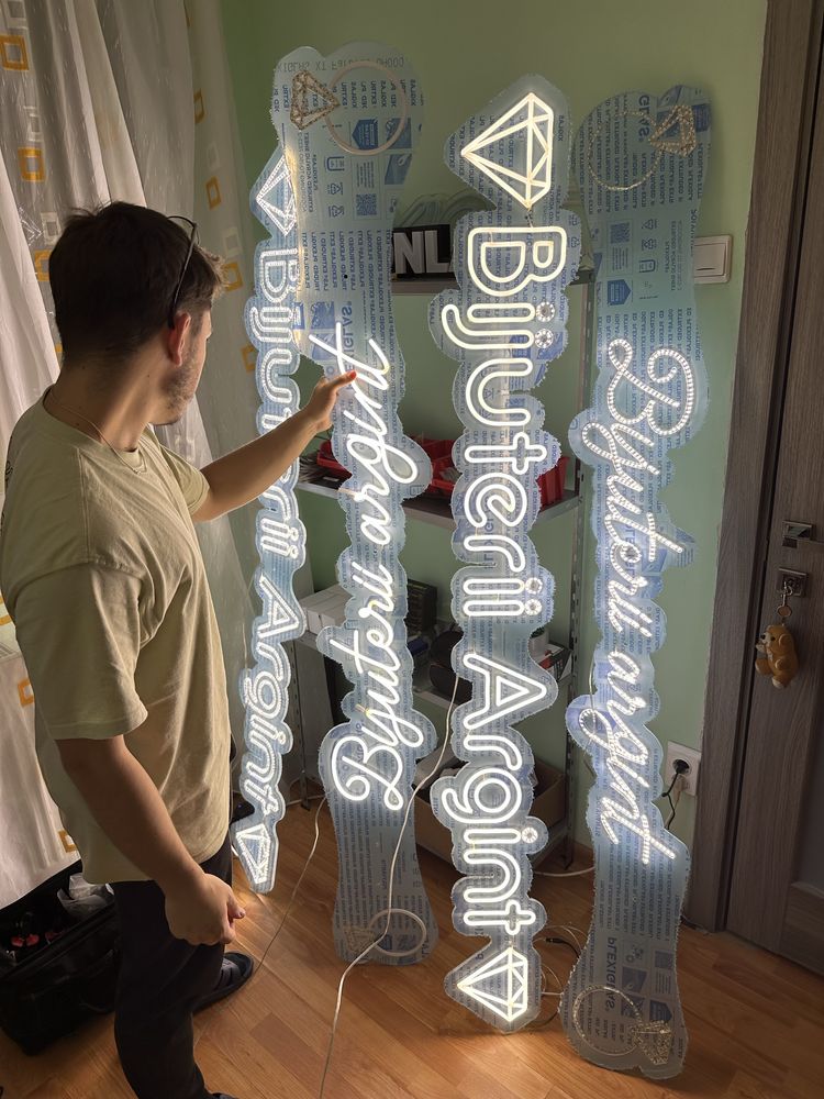 Decoratiune / Semn publicitar cu LED-uri personalizat, ideal pentru a atrage atenția și a promova afacerea ta. Oferim Randari 3D GRATUITE , lasă-ne un mesaj cu dimensiunea si modelul dorit si vei vedea produsul final ÎNAINTE de a cumpăra.(Vezi ultimele poze) Poate fi utilizat în interior sau exterior, oferind o soluție de iluminare atractivă pentru orice spațiu. Pentru mai multe poze neonlabsibiu pe ig. Dimensiune maxima 2x1,5m 10 moduri de functionare si control luminozitate. Baza pentru banda led si tubul de silicon este plexiglass transparent de 8mm. Comanda minima 350 de lei Avans 35% din valoarea totala la comenzi peste 500 de lei. Culorile si designul sunt la alegerea dumneavoastra. Tarif (calculat pe metru patrat) 1500 lei/m2 (ex dimensiunea 70x50cm - 525 lei) Livrăm în toată țara ! A teptăm mesajul tău.
