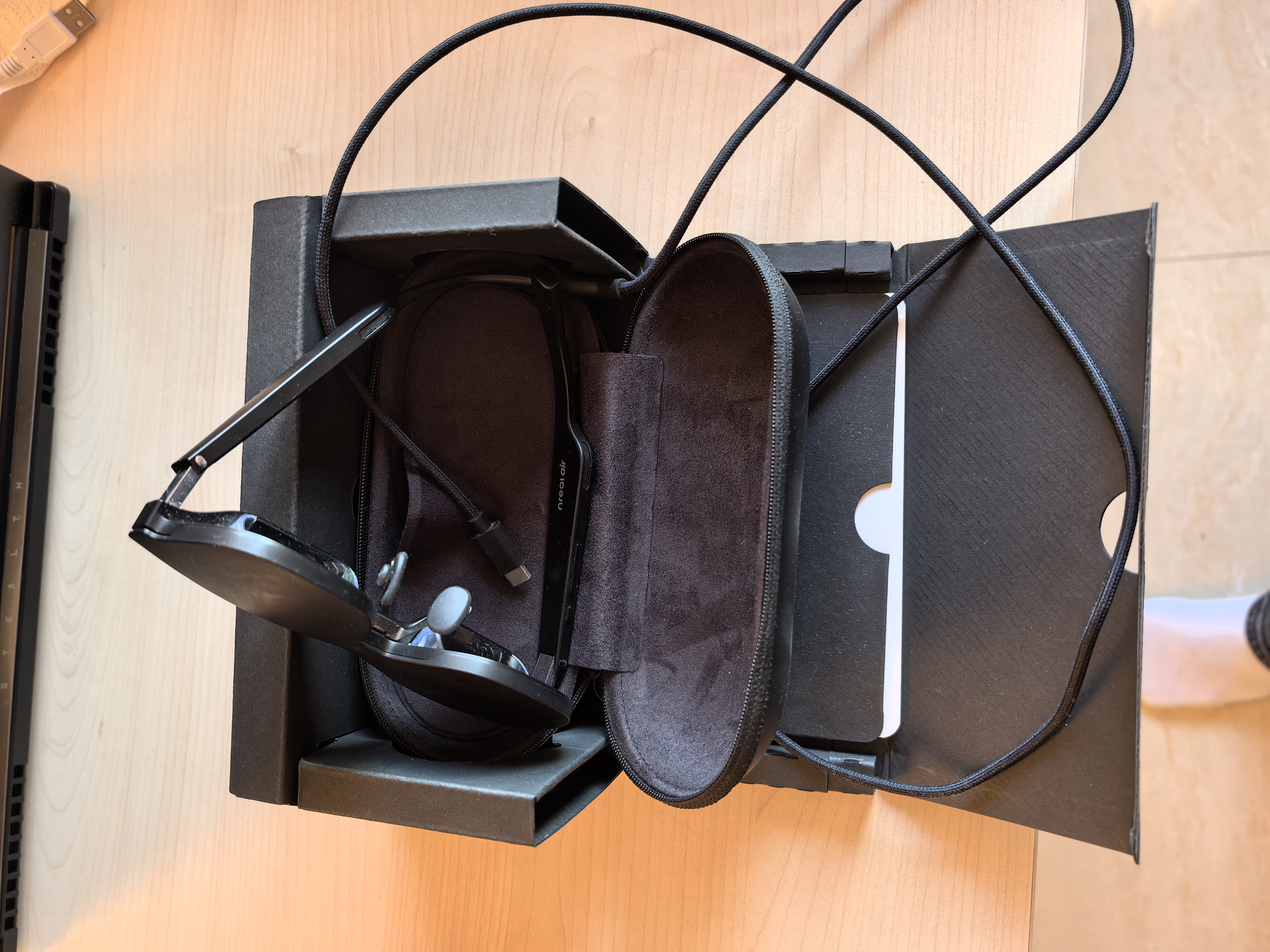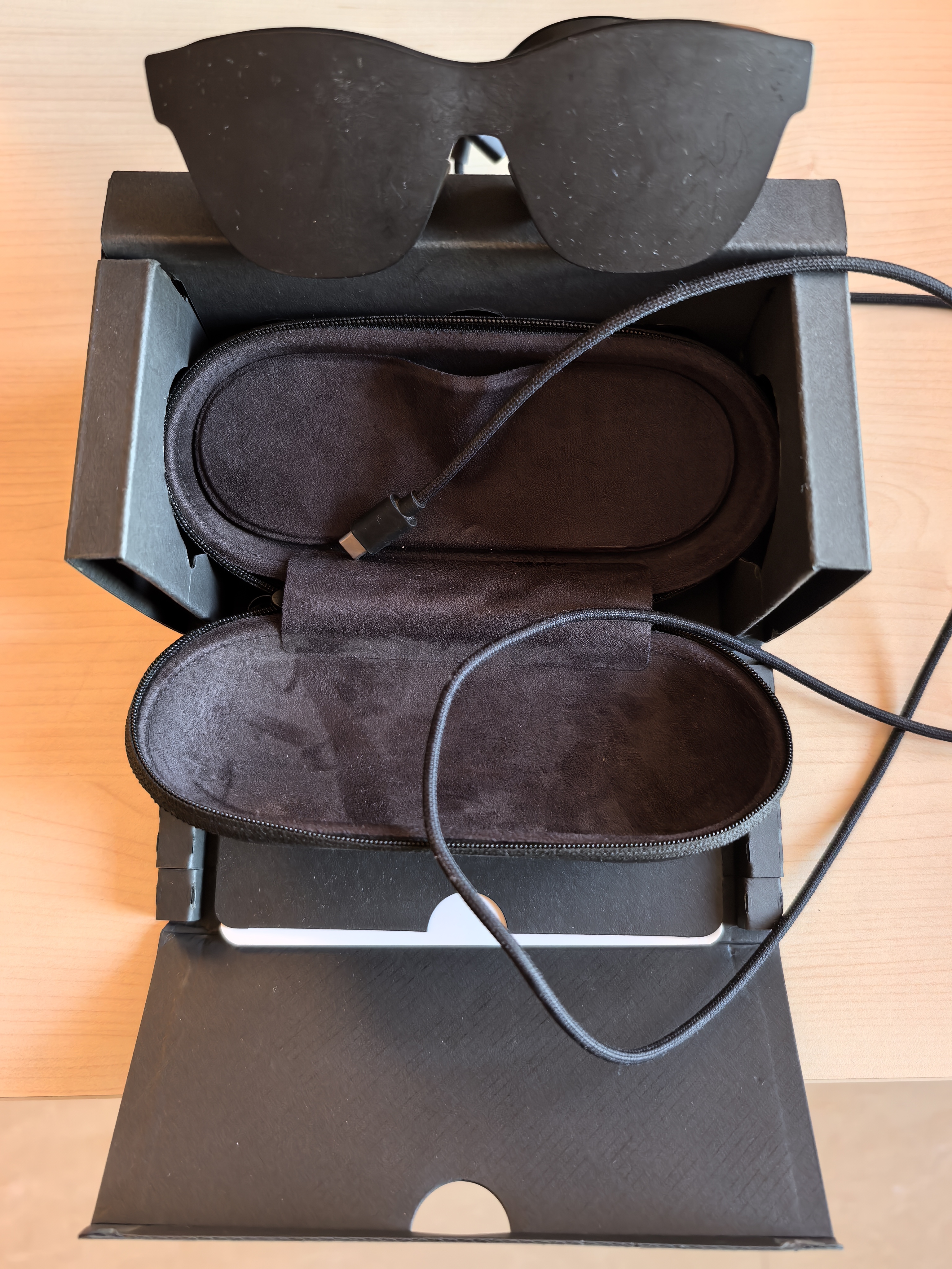 Ochelari AR de la firma nreal Air, prima generație. Permit conectarea la un dispozitiv cu ecran, precum telefon, laptop, PC, etc., astfel încât să facă o proiecție a acelui dispozitiv în ochelari. Dacă este conectat la un dispozitiv mobil, cum ar fi un telefon, permit deplasarea fără probleme prin locuințe sau alte spații deschise. Prețul de achiziție a fost 2400 de RON. Se vând deoarece stau degeaba prin casă.