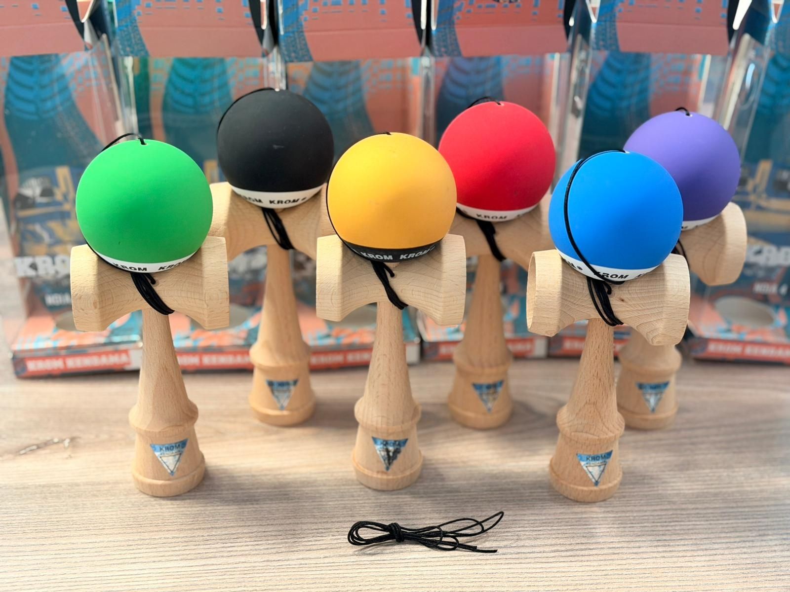 Kendama Krom Pop Rubber Grip(bila are aplicata o vopsea cauciucata pentru o aderenta mai buna,face ca trucurile sa fie mai ușor de controlat). Produsele sunt noi, sigilate, diverse culori. Livrare in toată tara!