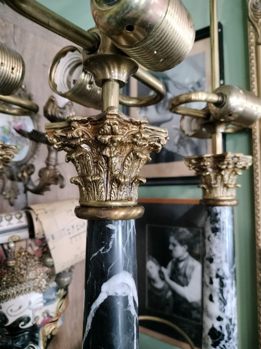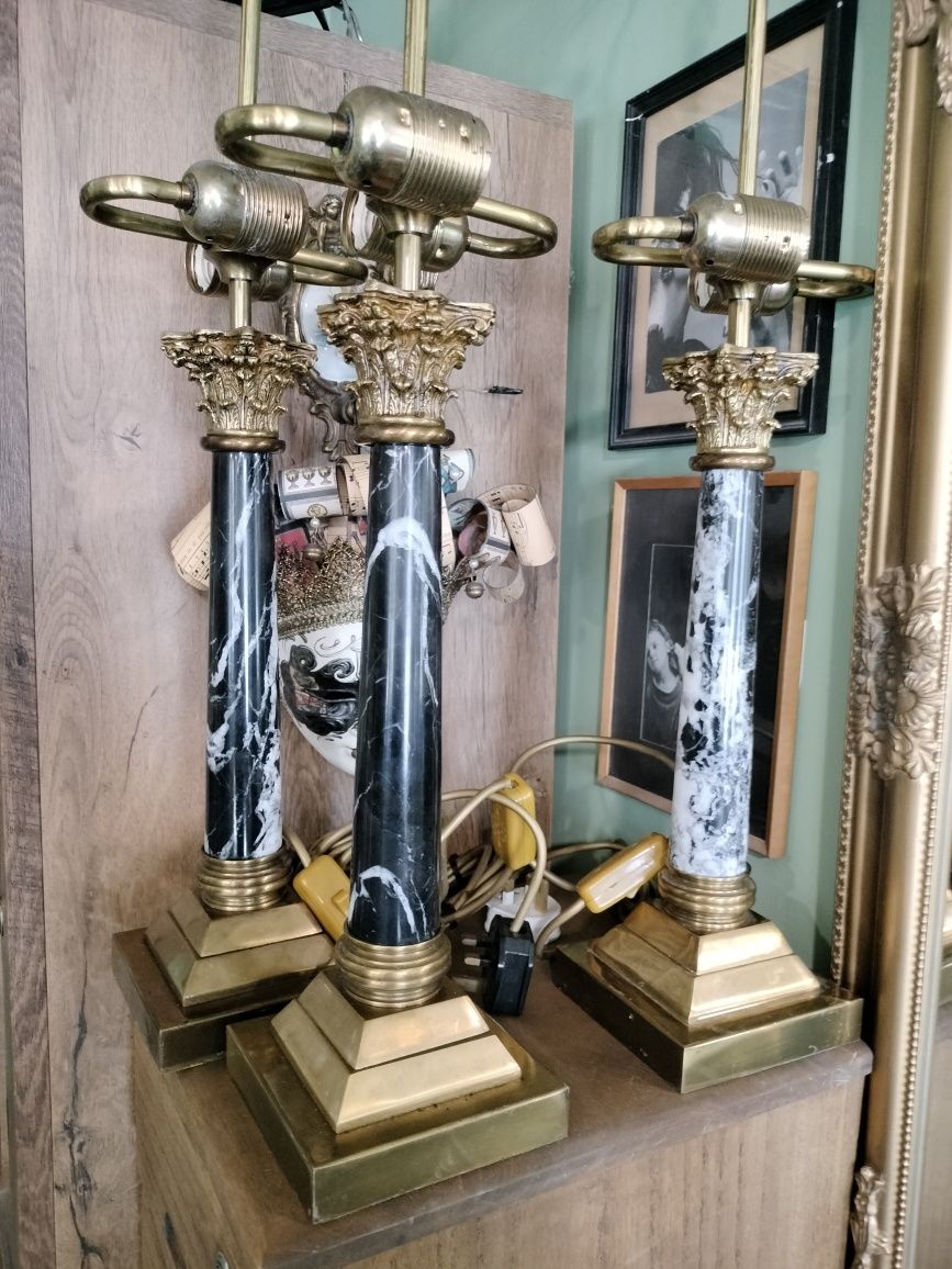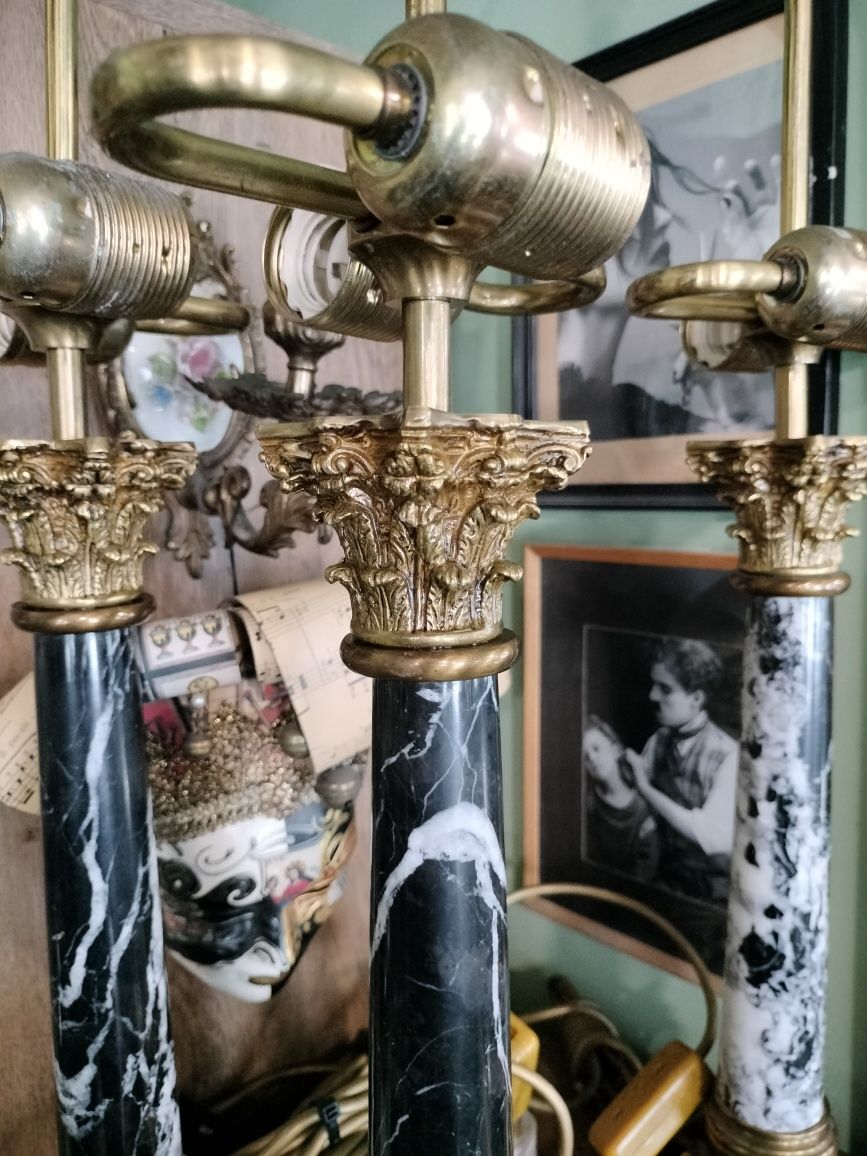 Lămpi de birou vintage din alamă și marmură. Corpul este decorat cu elemente ornamentale în stil clasic. Această lampă aduce o notă de eleganță și rafinament în orice spațiu. dimensiuni 69 cm!lămpile sunt funcționale.100 euro bucata!