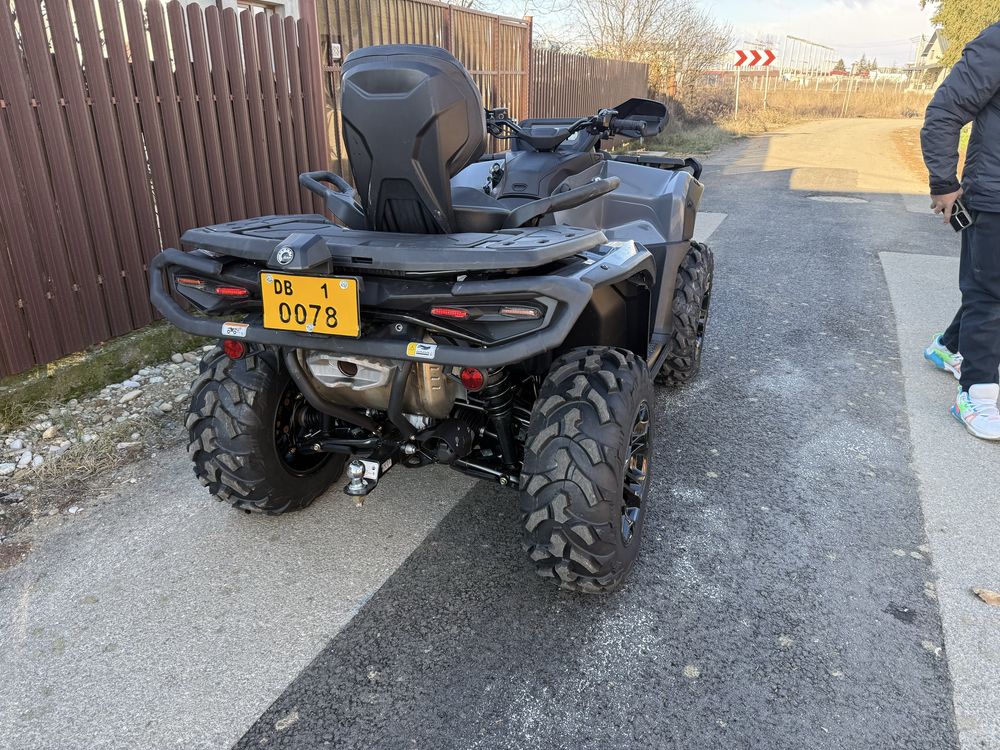 Vand can am outlander g3 1000 cmc an 2025 octombrie inmatriculat cu numere galbene . Are 950 km si 50 ore , troliu bulbar fata spate scut poliamida original , distantiere roti 5 mm in stare impecabila ,garantie 4 ani . Nu are carene rupte nu a fost folosit la extreme . Nu fac schimburi si nu raspund la mesaje . La cerere se vinde si cu platforma rabatabila inmatriculata cu asigurare la pretul de 16 300 euro . Atv ul are si oglinzile lui originale dar nu le am montat pe el le am in cutie plus scutul original ce vine din fabrica sub el se vinde cu absolut tot .pretul este fix fix fix nu deranjati cu oferte aveti pretul si numarul de tel in anunt