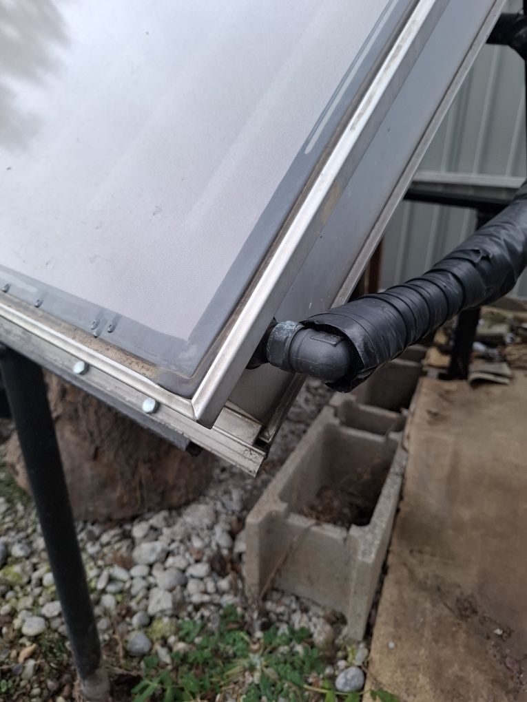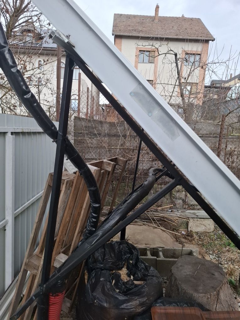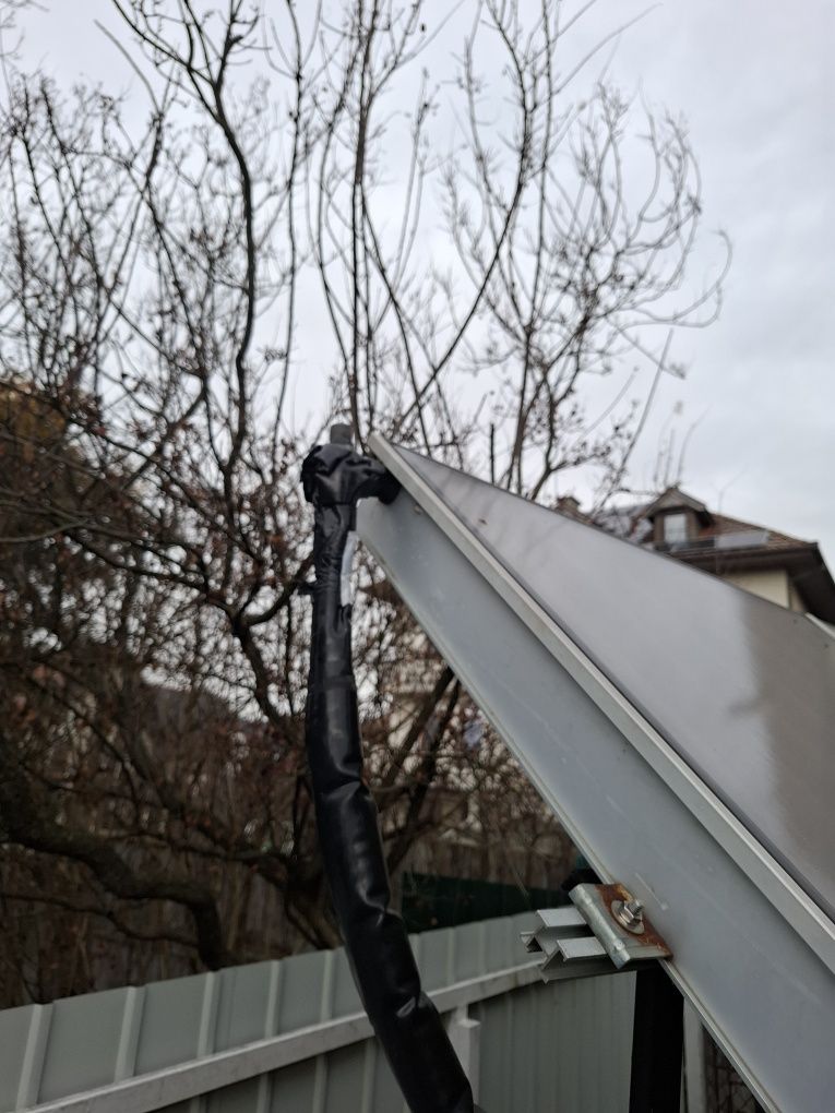 Panouri solare ariston pentru încălzirea apei, în stare bună, folosite anterior. Sunt două panouri dimensiune 1m 2m. Vin cu 10 m teava compatibila flexibila inox izolata+suportul metalic pe care stau in poza