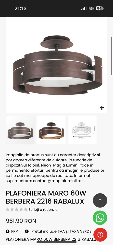 Platoniera sufragerie dormitor casa mari cu 3 becuri Timisoara