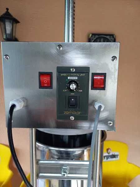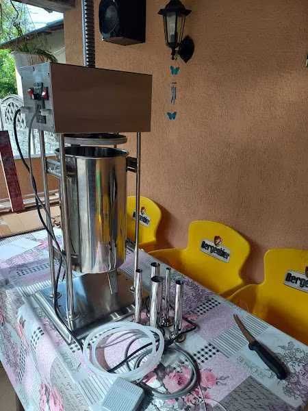 Vand carnatar inox electric nou,material inox,ideal pentru o carmagerie, produs nou sigilat import Italia DETALII Masina de umplut carnati electrica verticala 10-, 15l -25 Carantar prevazut cu variator cu viteza si actionare la pedala. Cu spritul pentru umplut carnati electric, prepararea carnatilor devine mult mai simpla, iar calitatea echipamentelor asigura o utilizare indelungata, fiind perfecte pentru orice carmangerie. Acest umplutor electric de cârnați este utilizat pe scară largă în măcelarii, hoteluri, cantine, piețe, restaurante, supermarketuri, case și alte locuri în care produceți cârnați. Umplutura electrică pentru cârnați este ușor de utilizat și practică. Odată ce ai un umplutor de cârnați, nu îți este frică de necazuri și oboseală, poți face cu ușurință cârnați, șuncă etc. Design constant Viteza reglabila cu control pe pedala Capacitate mare Alegeri multiple Specificatii Aparat sprit pentru umplut carnati electric cu variator de viteza. Aparatul este vertical si are capacitatea de 10-15-25 litri. Capacitate 10-15-25 L Putere 260-450 W Diametrul tuburilor de umplutură 0, 6"/0, 9"/1, 0"/1, 3"/1, 5" (16/22/25 /32/38mm) Dimensiuni produs 91x43x33cm/35, 8x16, 9x13 inci Greutate netă 32,08 kg/128,04 lbsMaterial otel inoxidabil Supapă Supapă de eliberare a presiunii Tip vertical Funcționare electric Putere 260W Tensiune , 220V pentru UE/AU Viteză viteză variabilă Capacitate 25 L / 39,7 lbs Diametrul interior al cilindrului 10,2 inchi / 26 cm Diametru exterior cilindrului 10,4 inchi / 26,3 cm Înălțimea cilindrului 18,1 inchi/46 cm Dimensiuni bază (L x l) 13,8" x 16,9" / 35 x 43 cm Dimensiunea duzei 0,63" / 16 mm, 0,87" / 22 mm, 0,98" / 25 mm, 1,26" / 32 mm, 1,50" / 38 mm Dimensiuni totale 35 x 43 x 91 cm