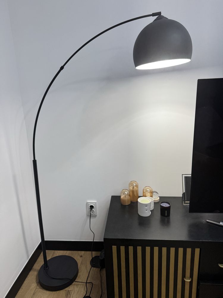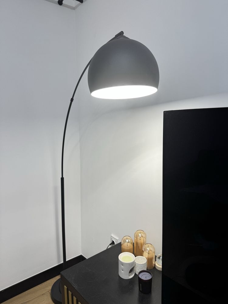 Lampadar metalic pentru podea. Forma arcuita. Inaltime 180 cm. Stare foarte buna, cu exceptia unor mici zgarieturi de la baza. Pret negociabil